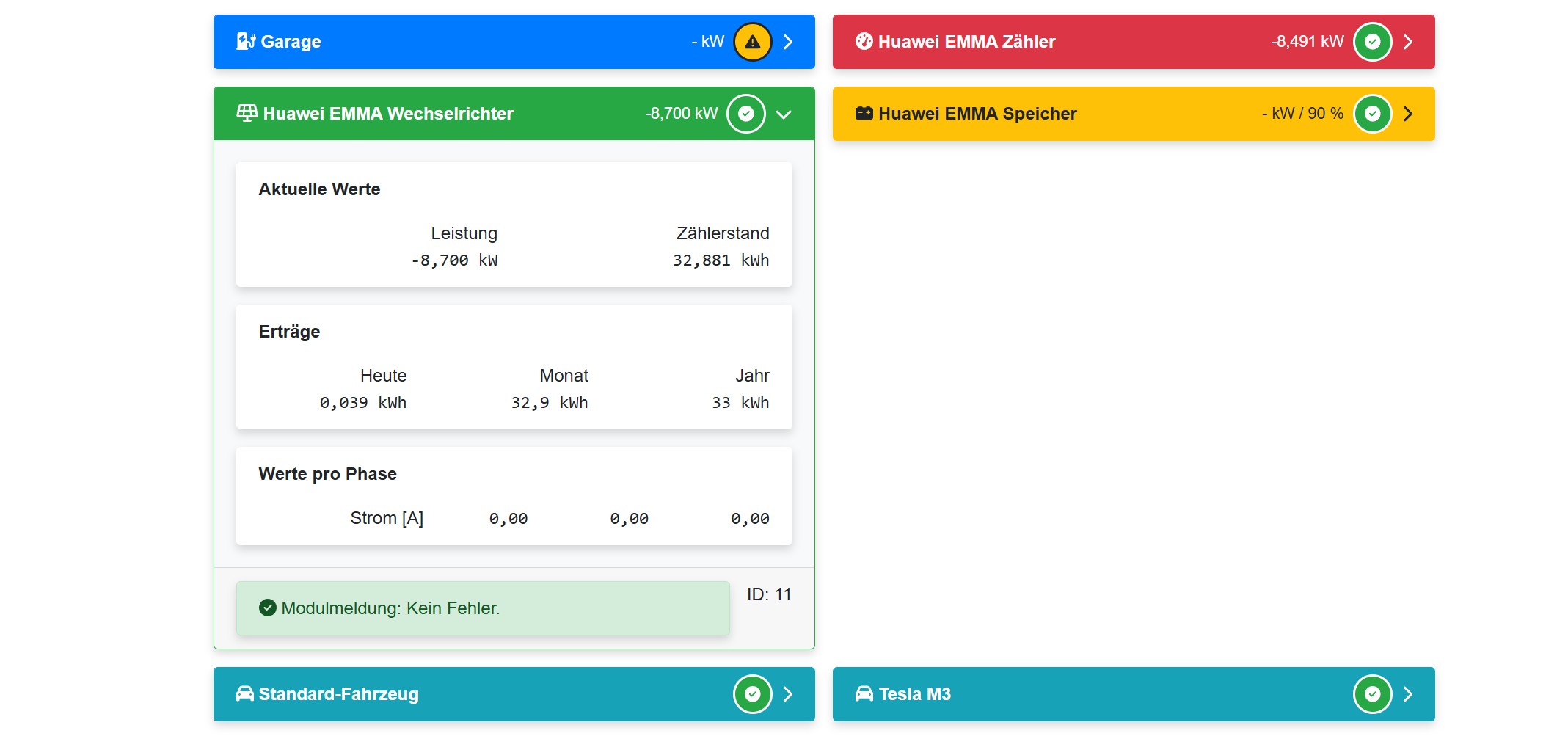 ich habe folgendes verhalten, wenn ich Fahrzeug A lade und dann auf Fahrzeug B wechsle wird zu beginn der letzte SOC vom Fahrzeug B richtig übernommen, aber beim 1 durchlauf werden die letzten geladenen kwh vom Fahrzeug A zum aktuellen ladenden Fahrzeug B dem SOC Wert dazugerechnet. Beide Fahrzeuge haben das manuelle SOC Modul und tritt nur auf wo beide Fahrzeuge am gleichen Tag geladen werden.