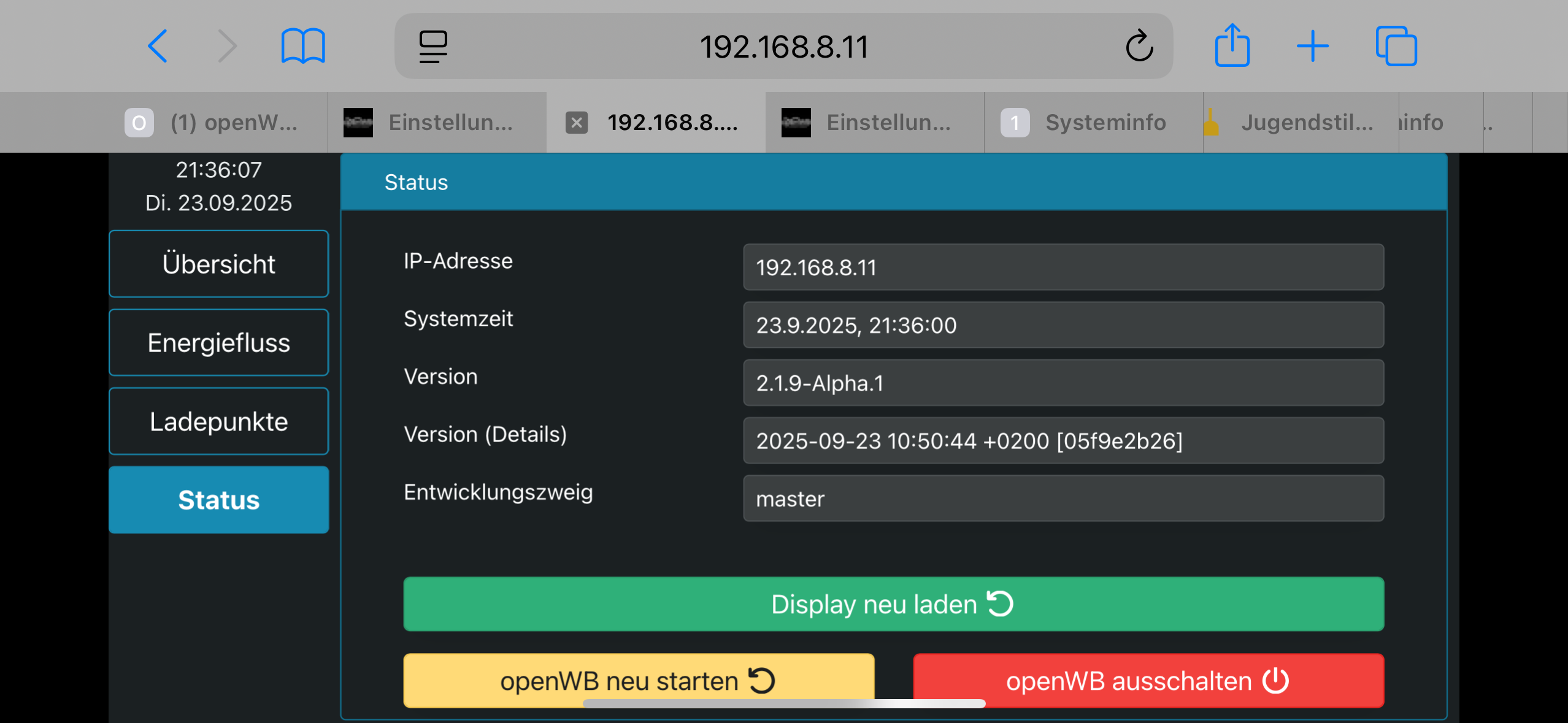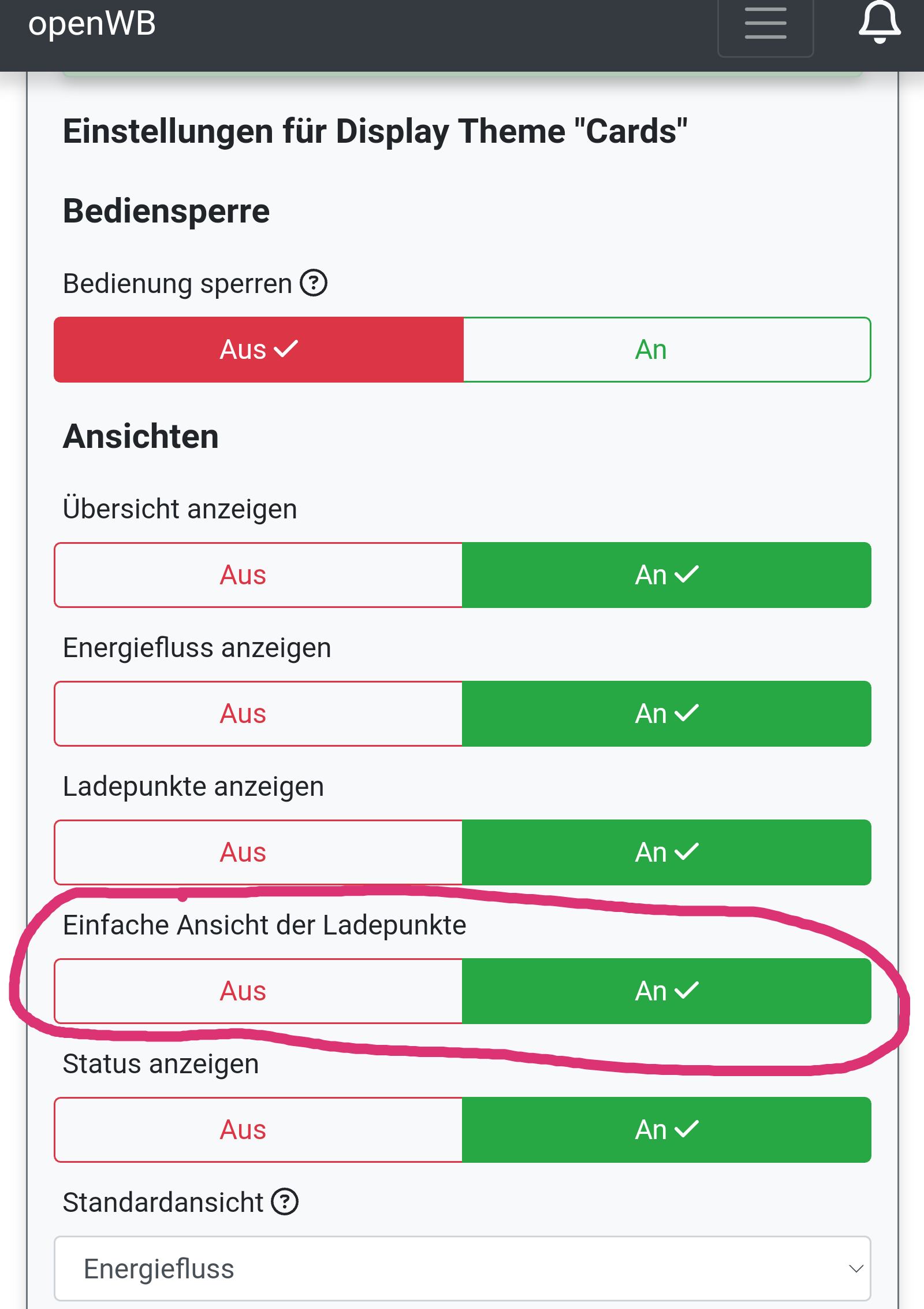 Ich mit meine "Wurstfingern" tue mich sehr schwer den Touchscreen an der openWB zu bedienen. Man muss sehr genau mit den Fingerspitzen bzw. besser mit den Fingernägeln zielen um die richtigen Einstellungen zum Laden zu erwischen. Bei der Vorgängerversion 1.9 war das eindeutig besser.