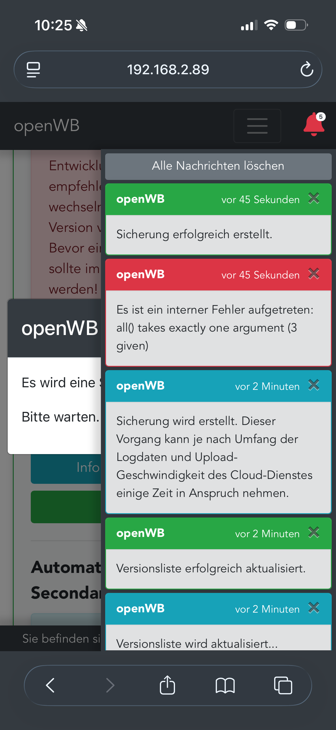 Ich wollte gerade das Master von heute Früh updaten. Leider kommt dann auch der Fehler (siehe Anhang). Also kann ich Stand jetzt kein Update oder Backup einspielen. Bin jetzt etwas ratlos.LutzB hat geschrieben: Mo Sep 29, 2025 6:51 amBitte ein Log mit allen Details bereitstellen.DirkMa hat geschrieben: So Sep 28, 2025 7:59 amHi,kai9555 hat geschrieben: So Sep 28, 2025 6:20 am ...