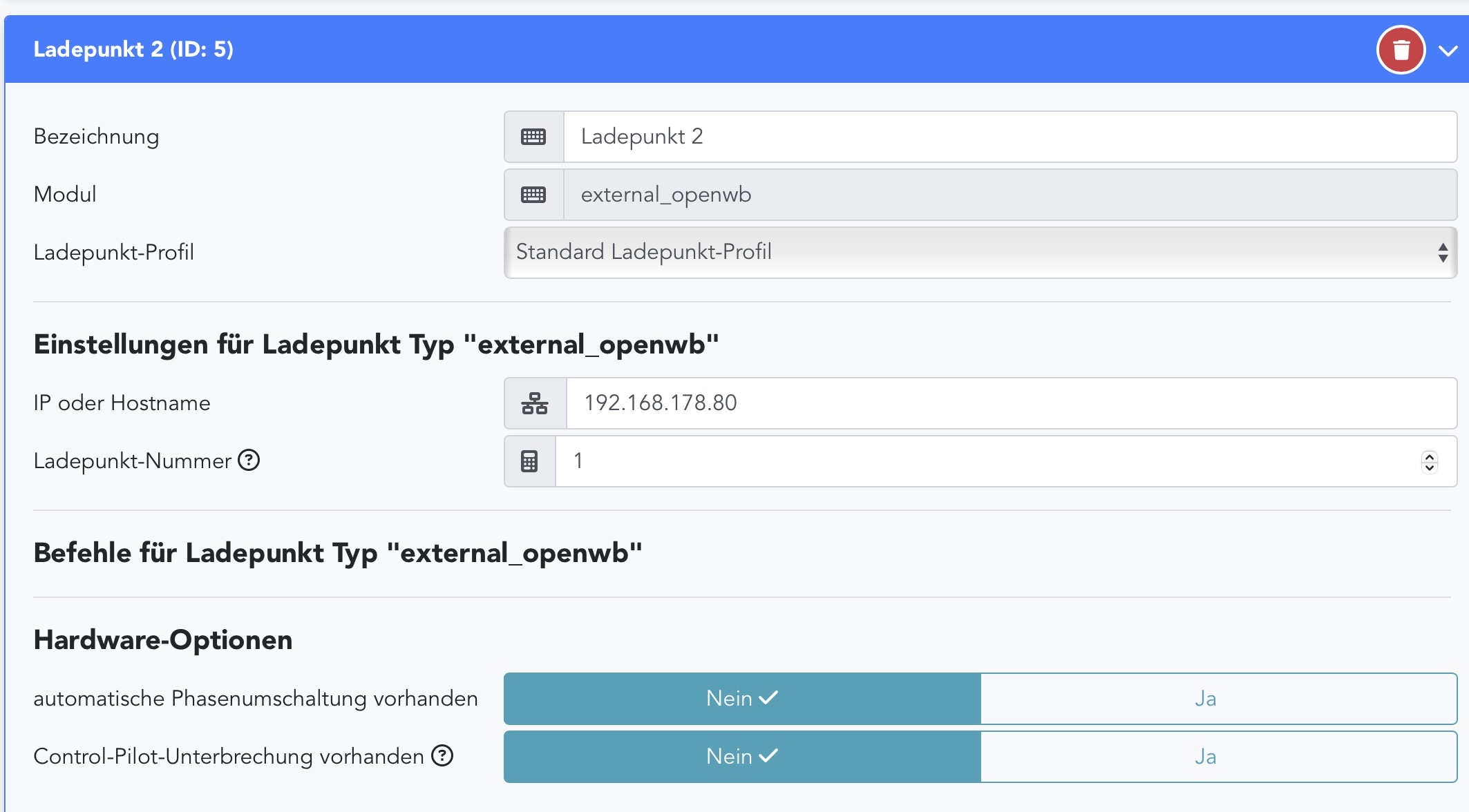 Bei der openWB 1 habe ich es wie folgt eingestellt: