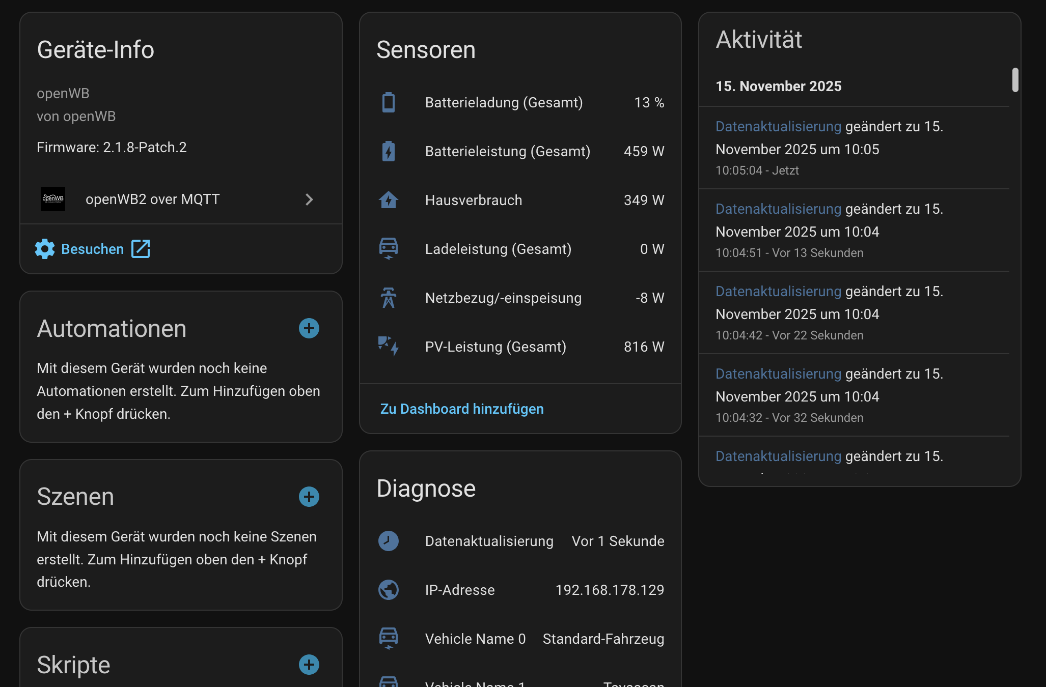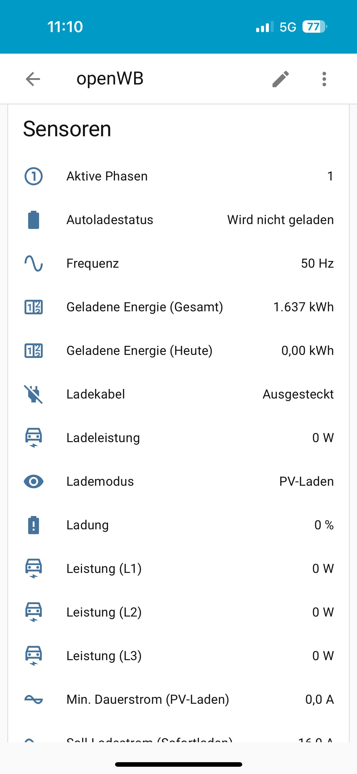 Ich kann von vom HA aus auch keine Lademodi oder ähnliches vorgeben... wenn ich auf der OpenWB es anpassen, dann ändern sich auch die Werte im im HA.
