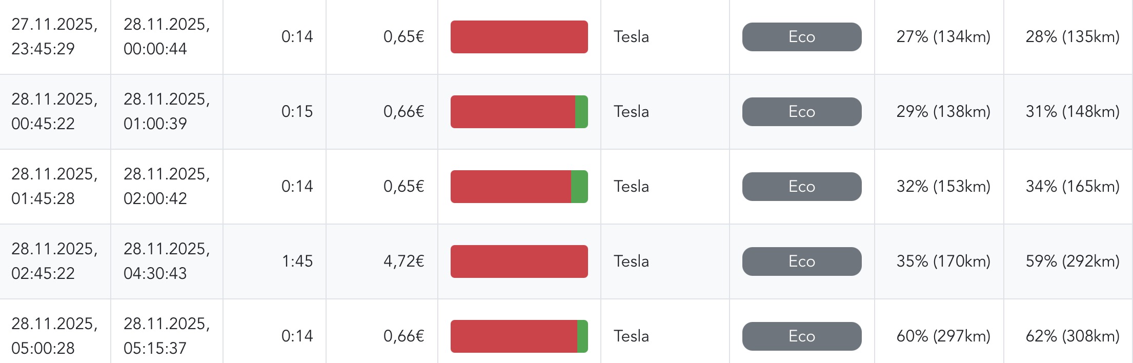 Frage: Ist es so gewollt, dass beim Zielladen (andere Lademodi habe ich gerade nicht getestet) Der Ladevorgang so zerstückelt wird? Angesteckt habe ich am 18.11. Mittag und Zielladen war auf 19.11. 07 Uhr eingestellt. Fahrzeug wurde erst nach erreichen abgesteckt. Im Ladelog habe ich dann 5 Ladungen zu diesem "einzelnen" Ladevorgang. Die Aufteilung entspricht den 15min Blöcken vom Tibber Strompreis.