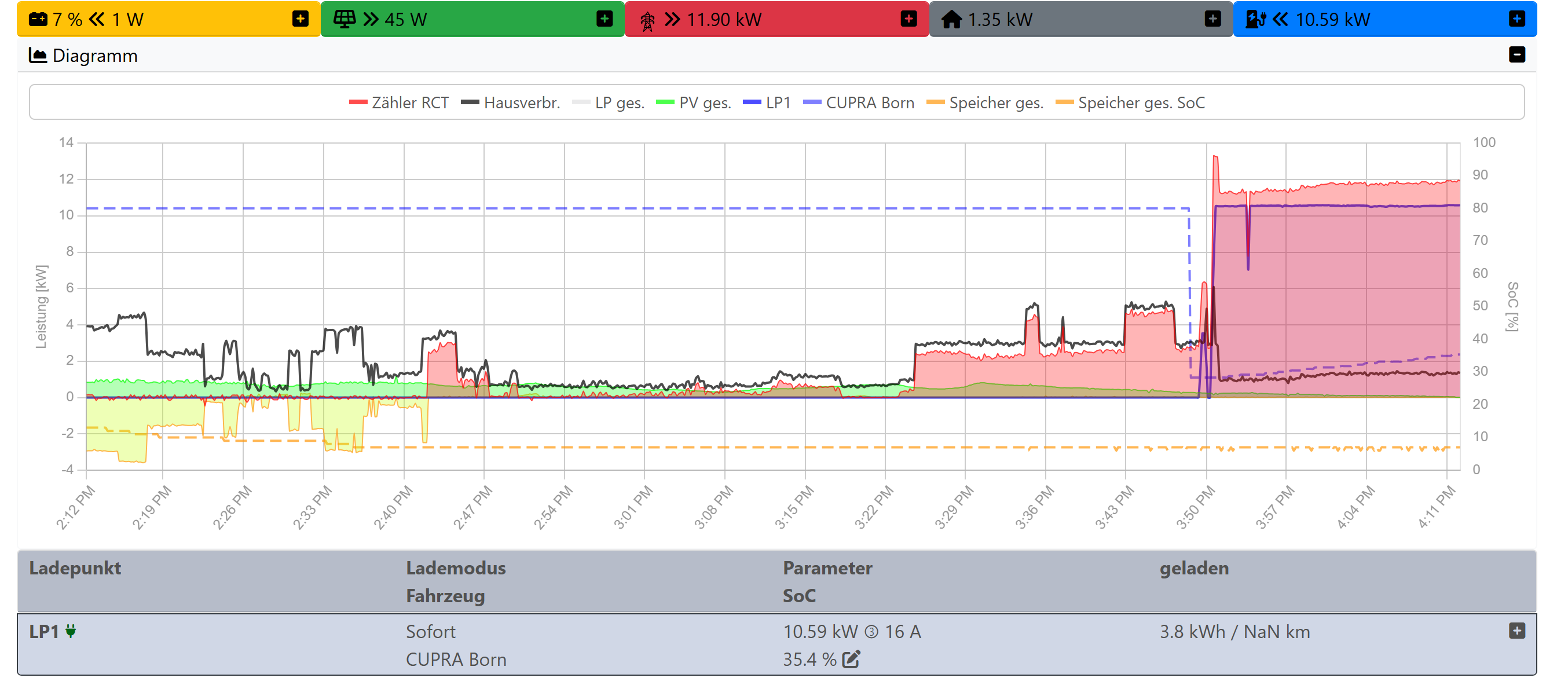 - Die openWB stand auf PV (mit unzureichend Überschuss)