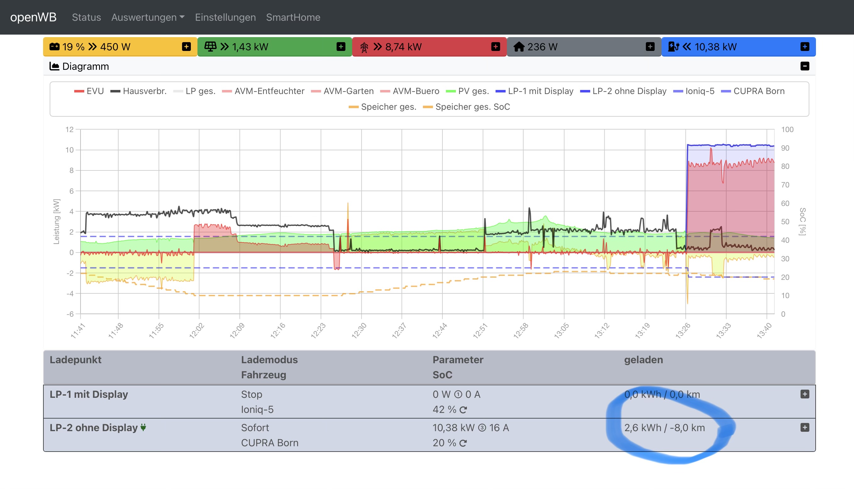 openWB series2 custom, Škoda Elroq 85, smart EQ, 4,36 kWp Solarworld-PV mit SMA SB 5000 TL-21, Eigenbau-Raspi-Logger mit PV-RS-485 und Tibber Pulse, Niu N-Series, HomeConnect, Z-Wave Smart Home