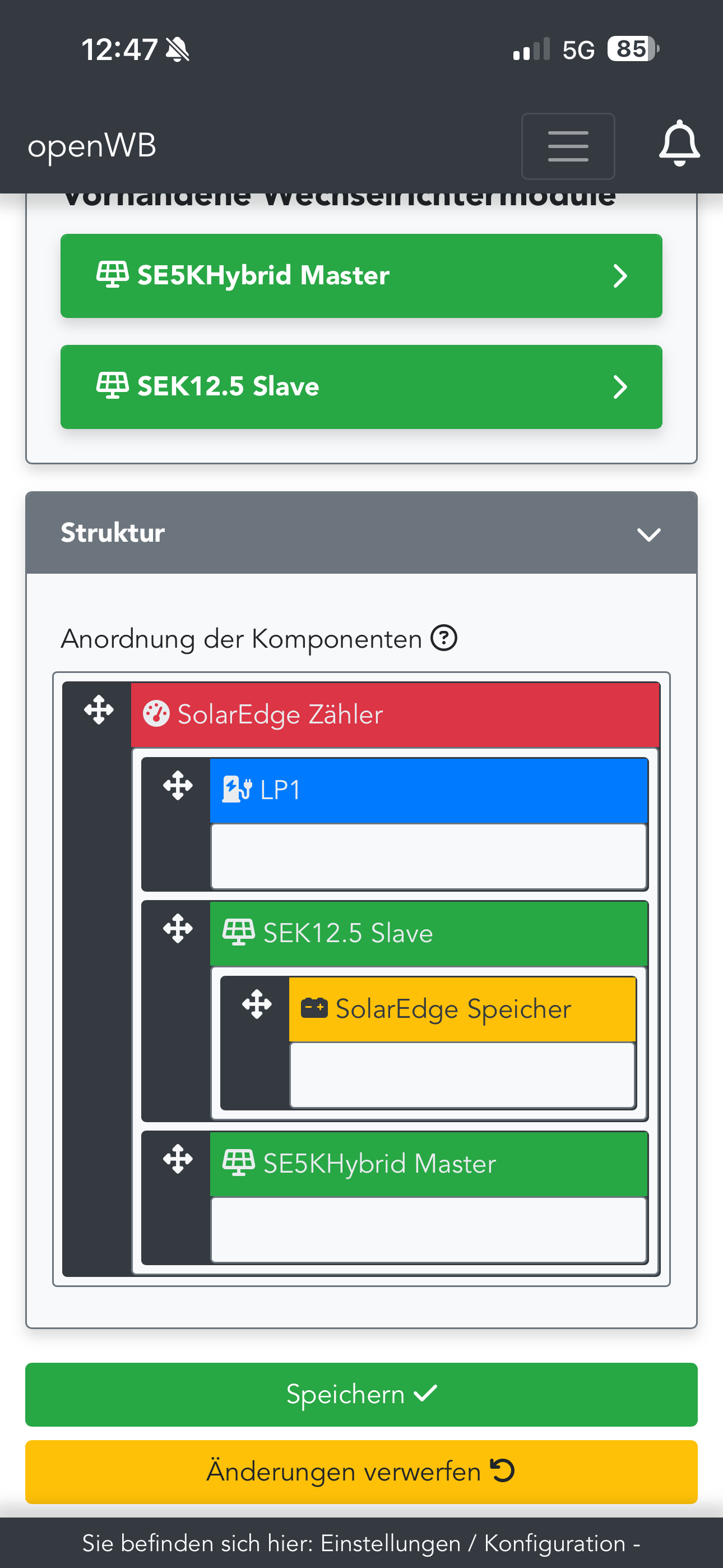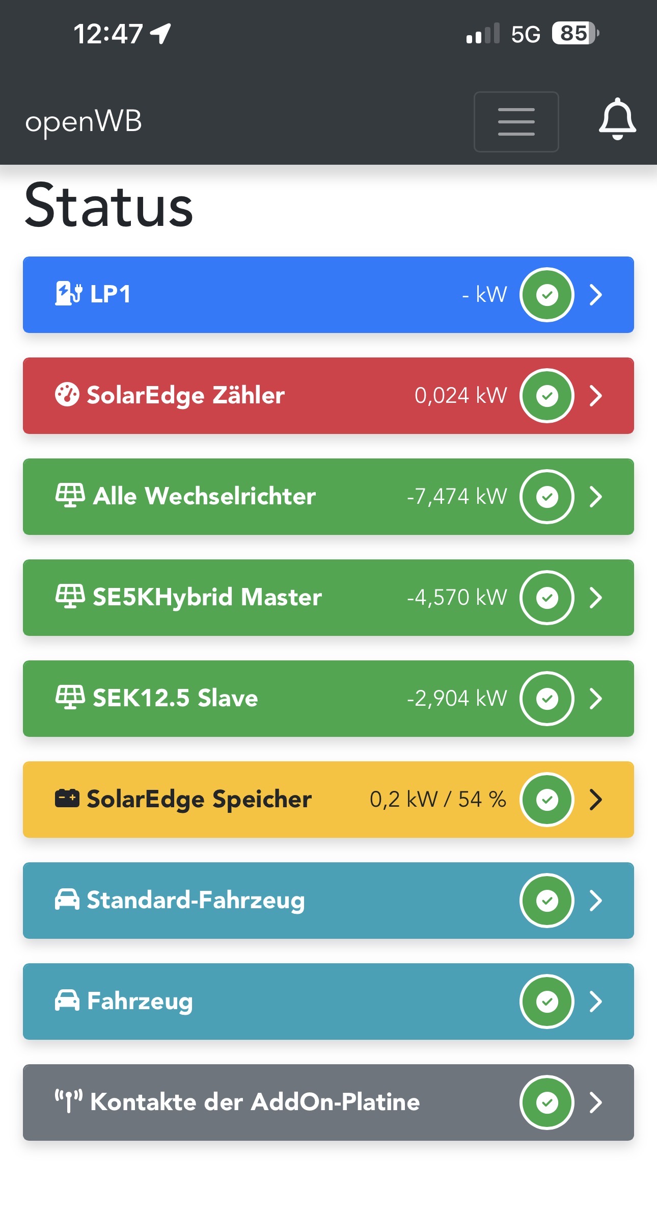 Die Lösung wurde Dir vermutlich schon mitgeteilt: viewtopic.php?p=138793#p138793kalif_vs hat geschrieben: Mo Feb 02, 2026 11:41 am Gibt es hier eine Lösung? Im Prinzip müsste ich der Open WB mitteilen können, dass in der Nacht die Wechselrichter Leistung die Batterieleistung abzüglich Eigenverbrauch des Wechselrichter ist.