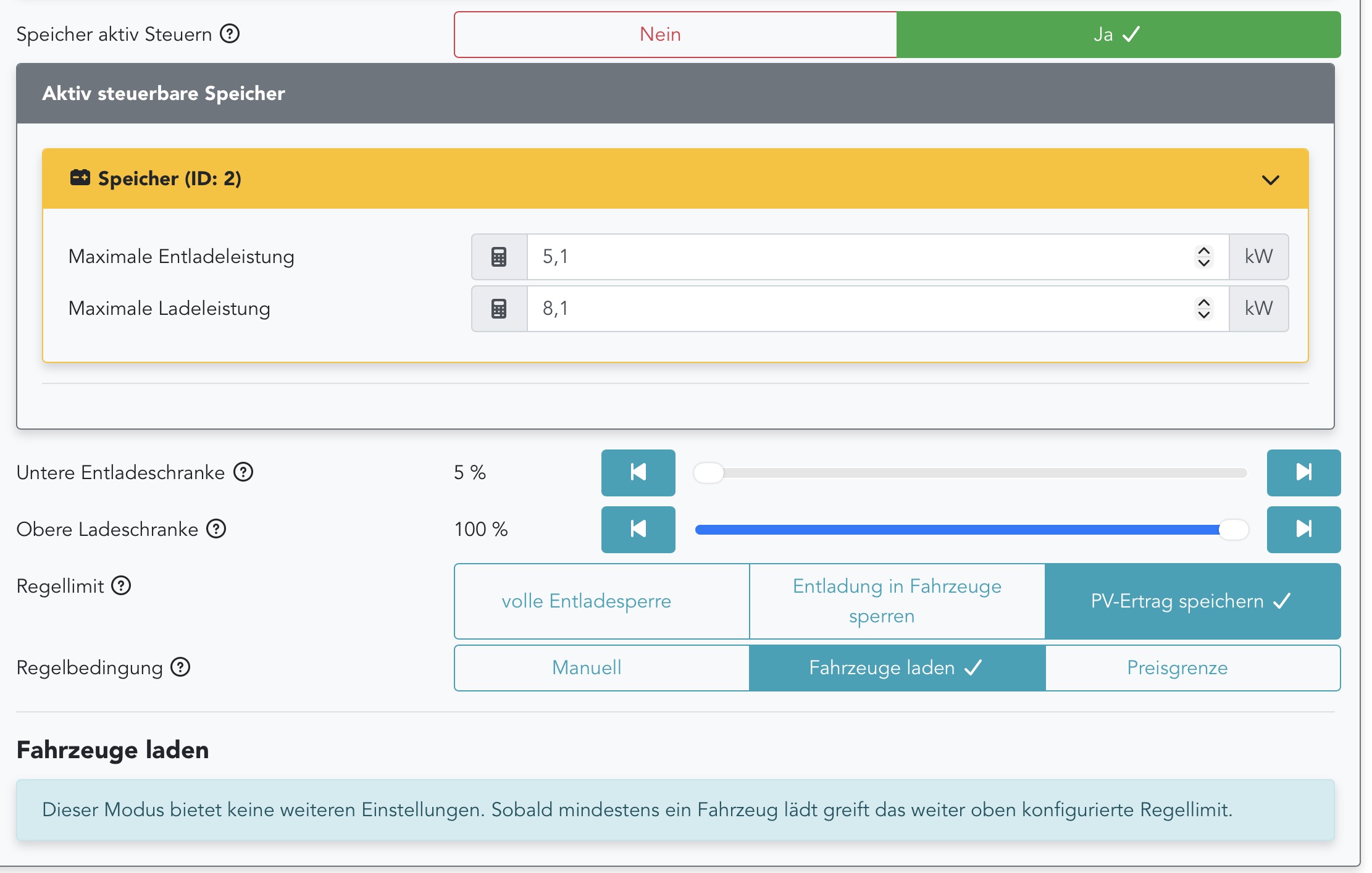 Ich hätte erwartet, dass dies nur bei aktiver Fahrzeugladung erfolgt und sonst der Speicher in Eigenreglung versetzt wird.