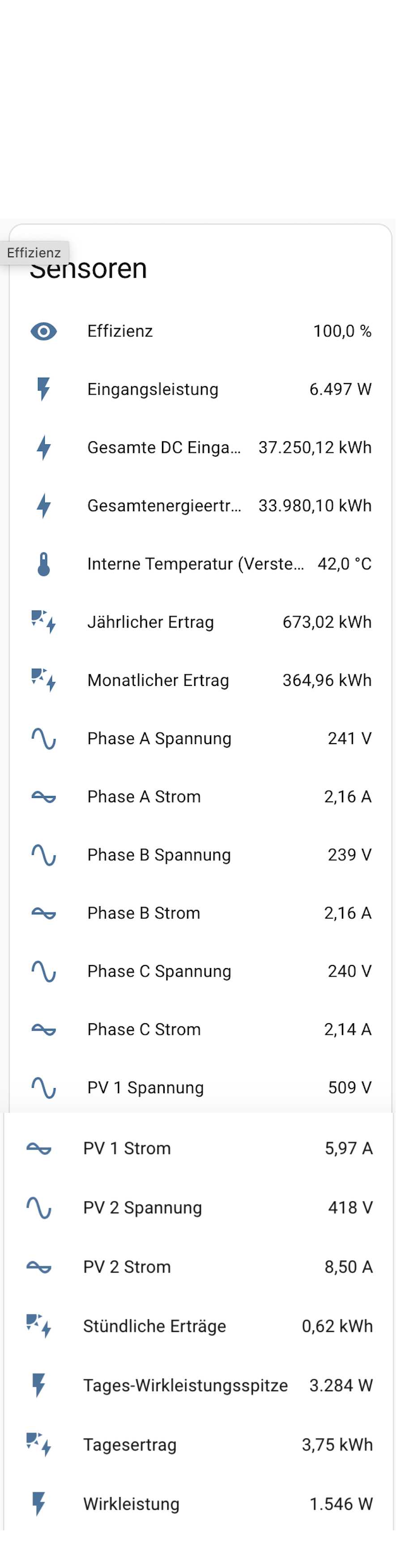 vielen Dank - also das heisst, wenn mir die Huawei-Sensoren in Home Assistant sagen: Du produzierst gerade +4800w müsste ich das dann mit -1 multiplizieren, damit der produzierte Wert negativ wird. Im Status wird mir das dann wie folgt angezeigt: