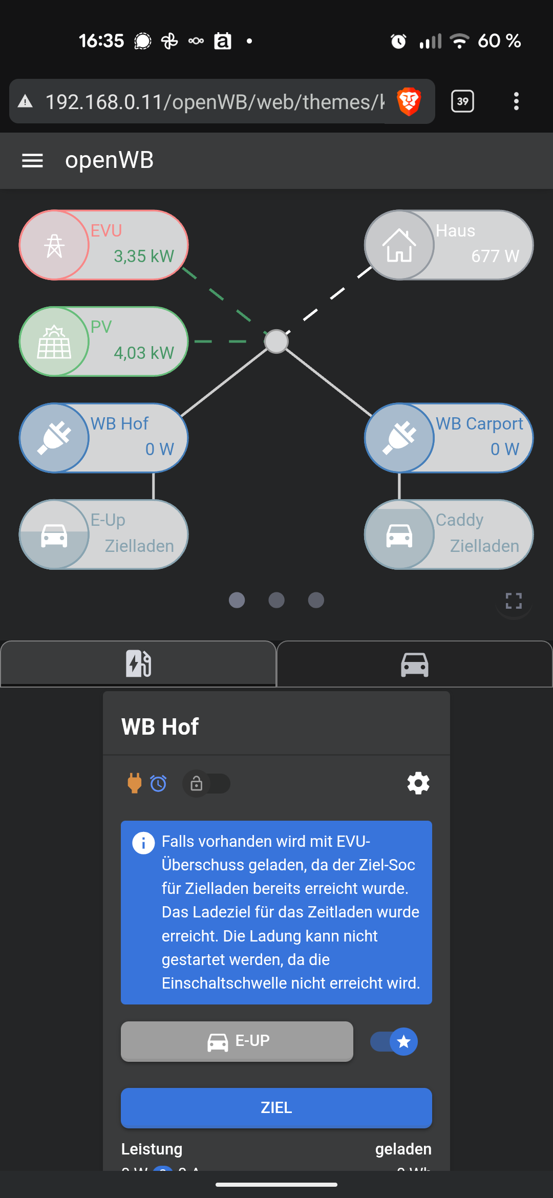 Unter "Status" wurd mir in der openWB auch folgender Text angezeigt