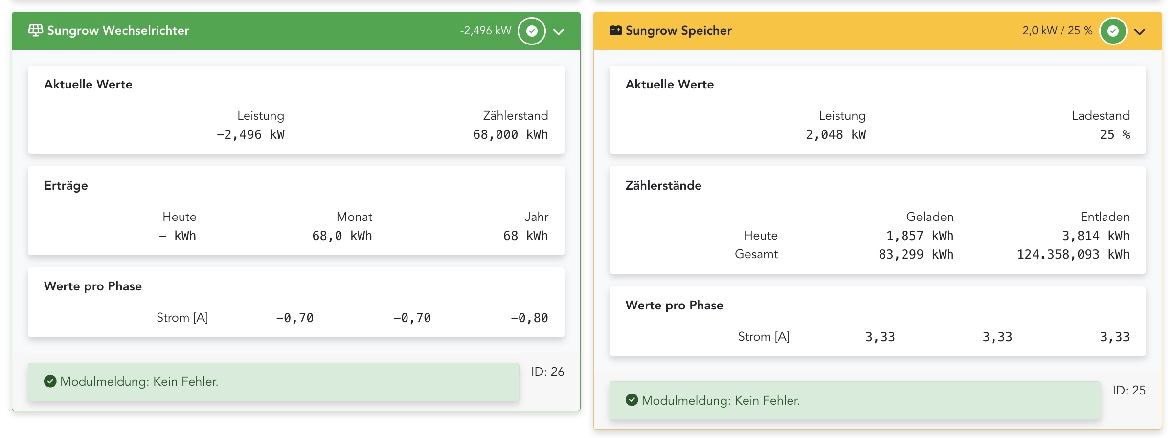 Ich habe seitens des Status und der Fehlermeldungen - imho - ein sauberes Setup. Aber beim PV Ertrag habe ich ein Problem: