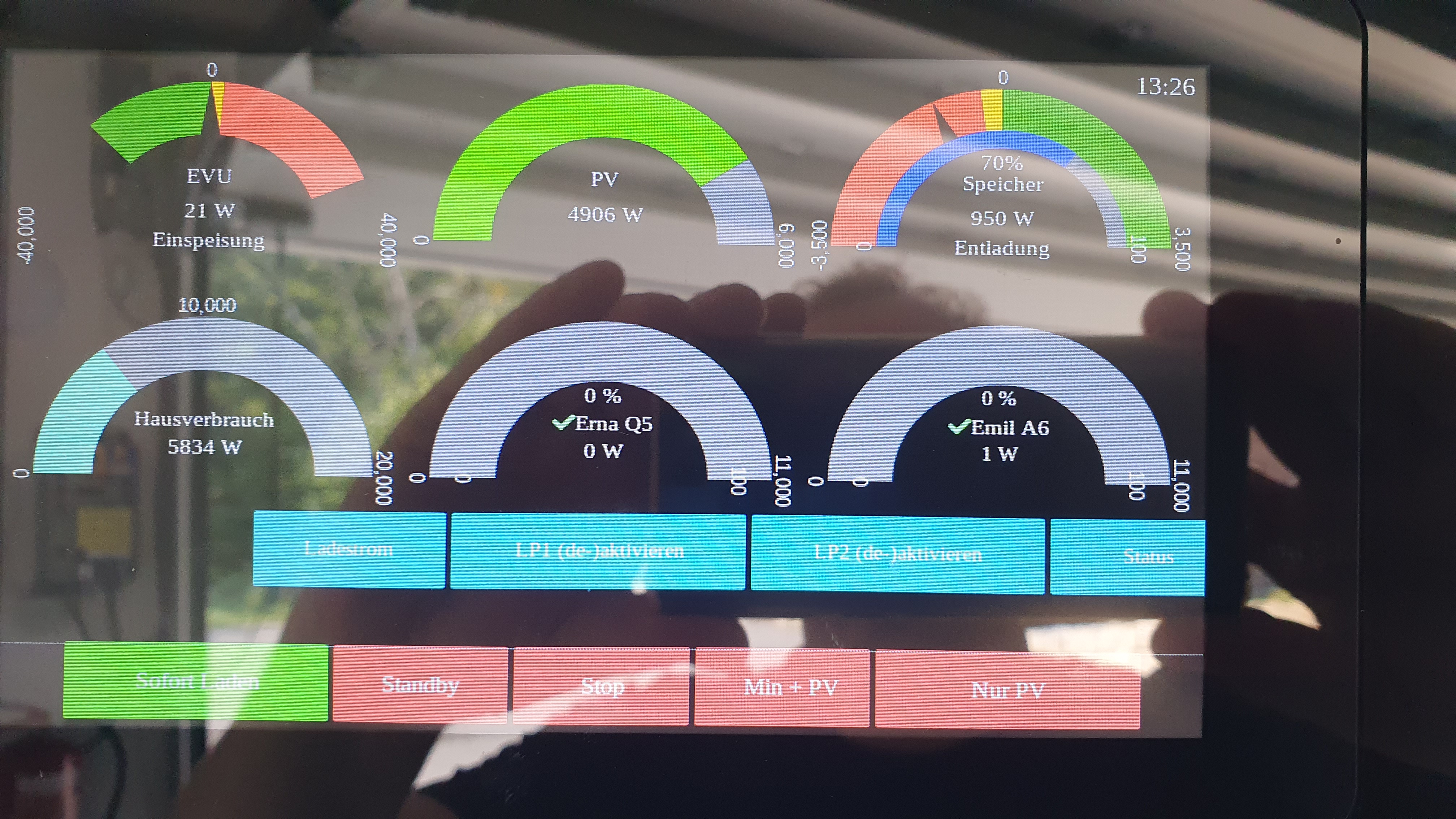 Aber: Auf dem Display des Duo wird der Ladepunkt mit 1W angezeigt und die Ladeleistung dem Hausverbrauch zugeschlagen.
