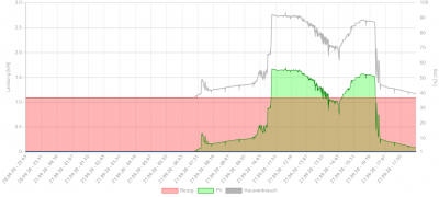 gestern Abend nochmals den Tipp von Kristian befolgt. Nochmals den Port des ModBus geändert, abgespeichert. Danach wieder auf Port 502 gestellt, abgespeichert. Alles lief. Vorhin nach Hause gekommen und mir den Graph angesehen. Der sieht wie folgt vom heutigen Tage aus: