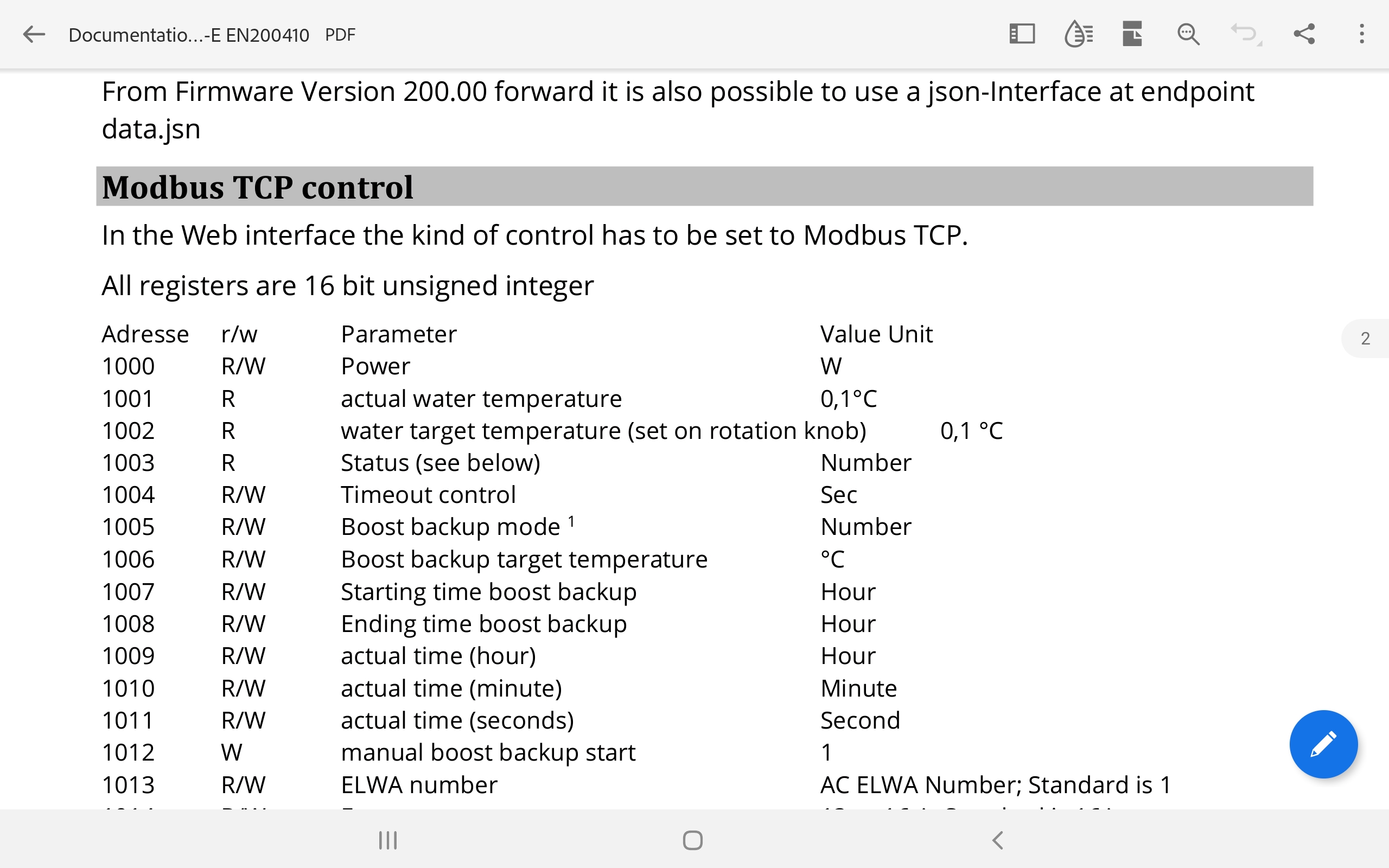 Dann müsste ich noch wissen welche Temperatur du dem Heizstab eingestellt hast, da die Modbusadressen