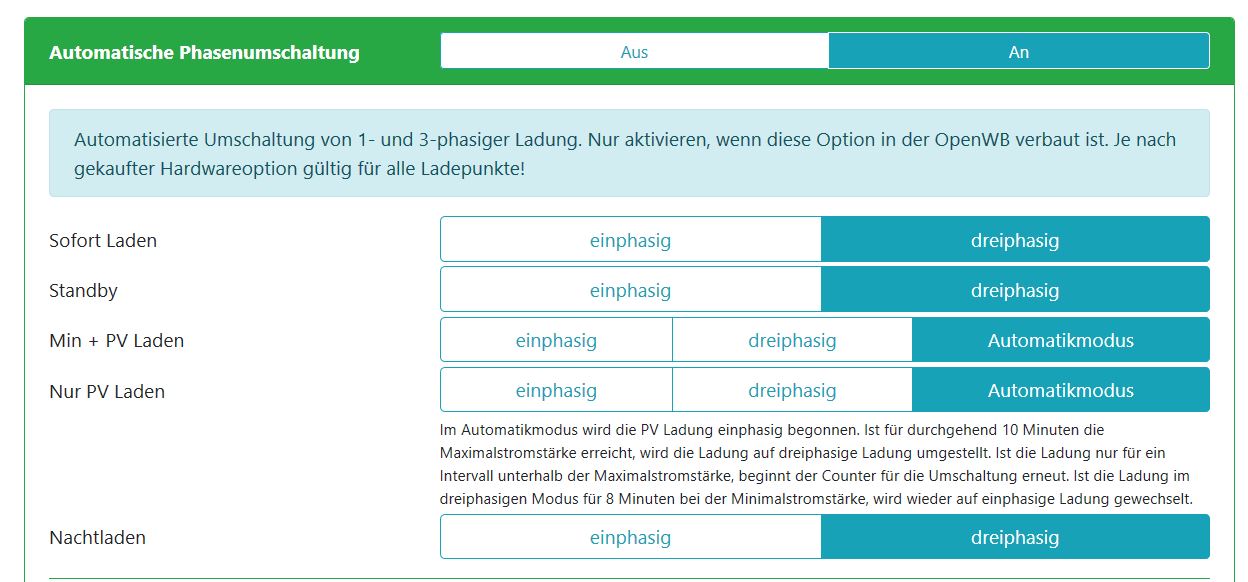4. Wenn ich mich recht erinnere dauert es dann ca.10 min bevor die Phasenumschaltung greift und auf eine Phase umgeschaltet wird.
