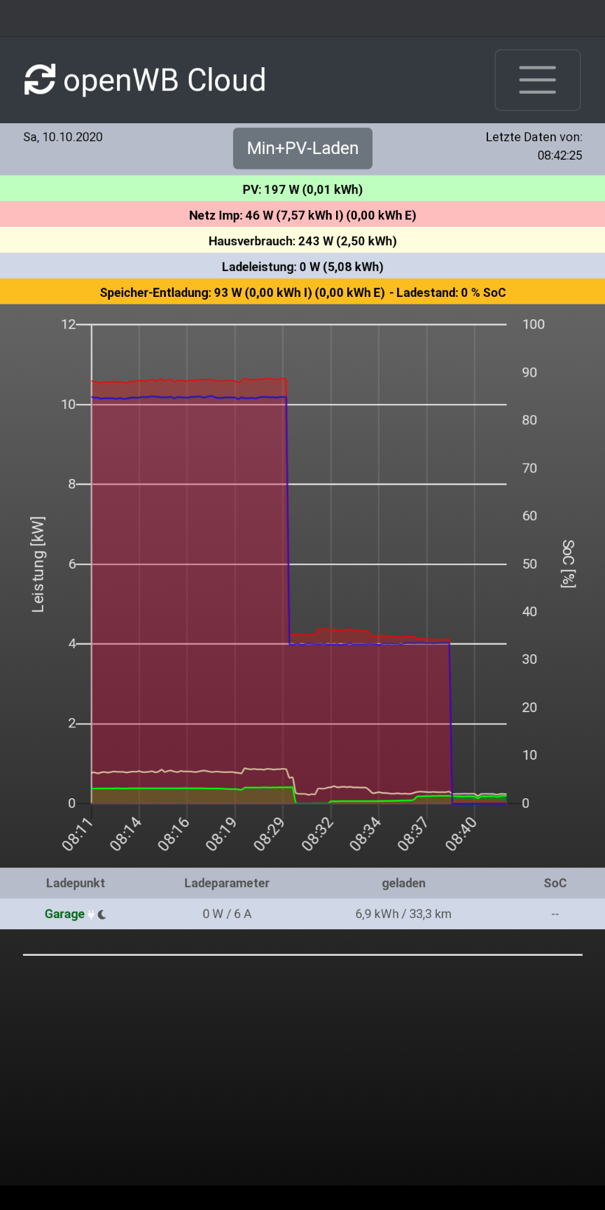 Ich hatte zuvor von MIN+PV (einphasig) auf Standby gewechselt.
