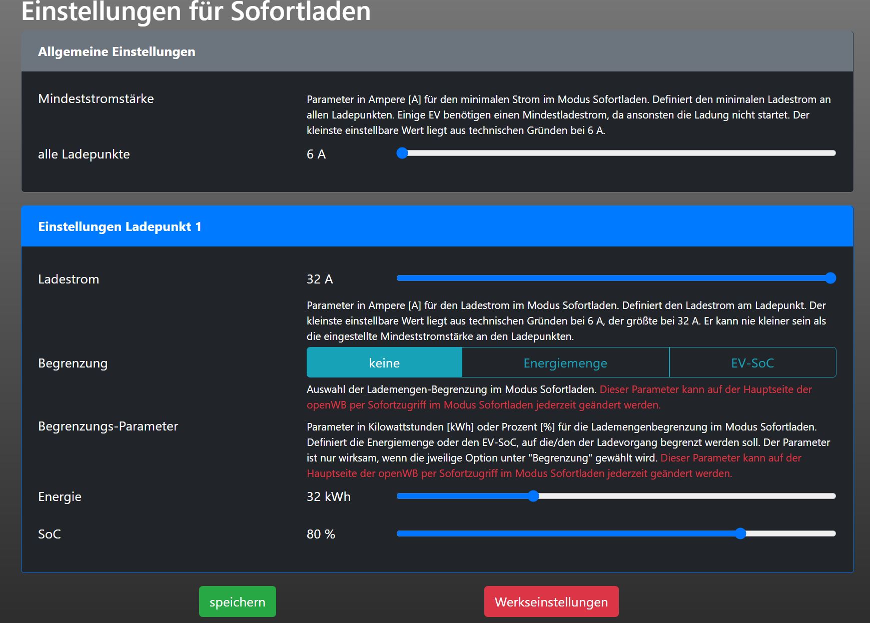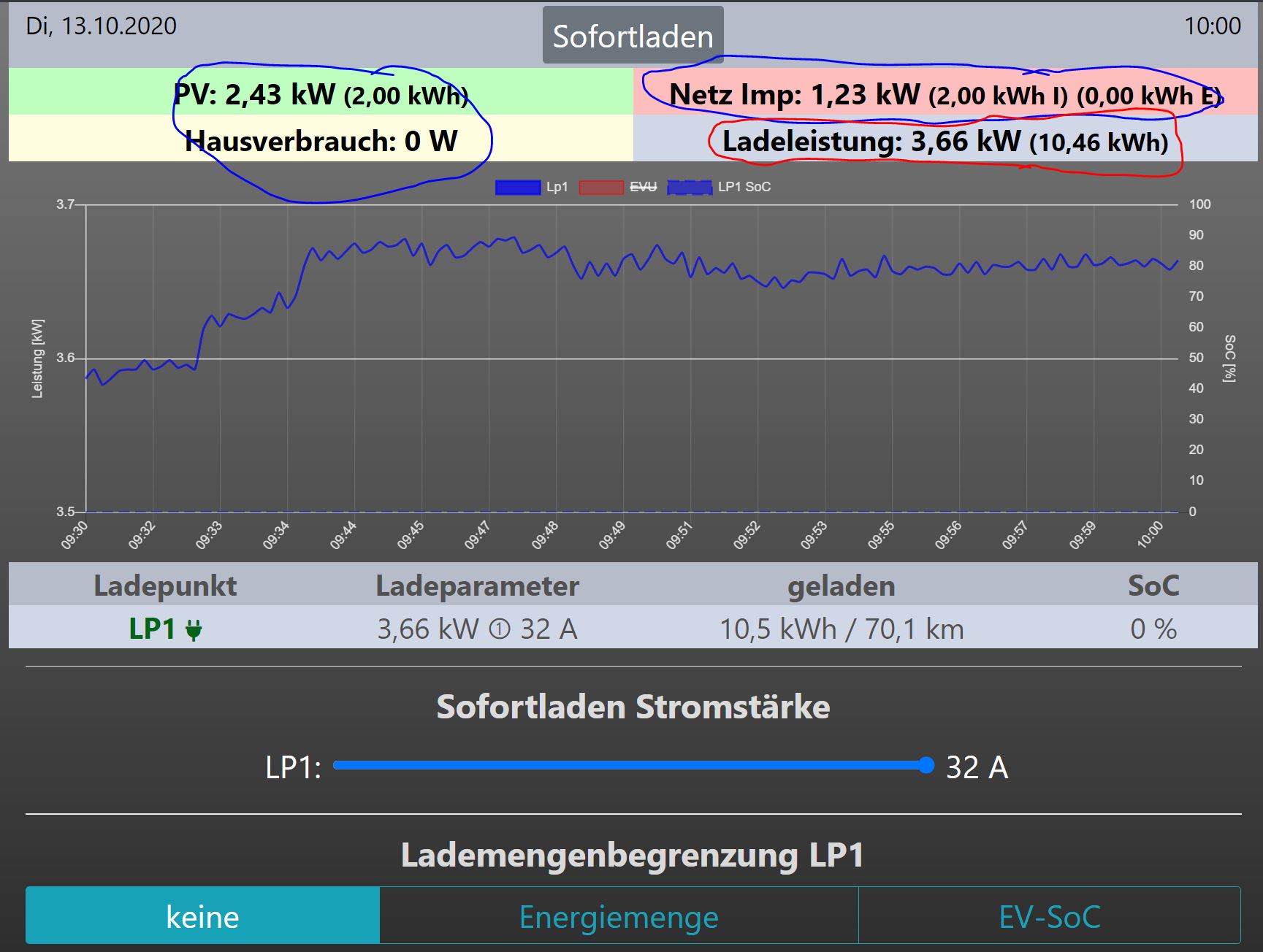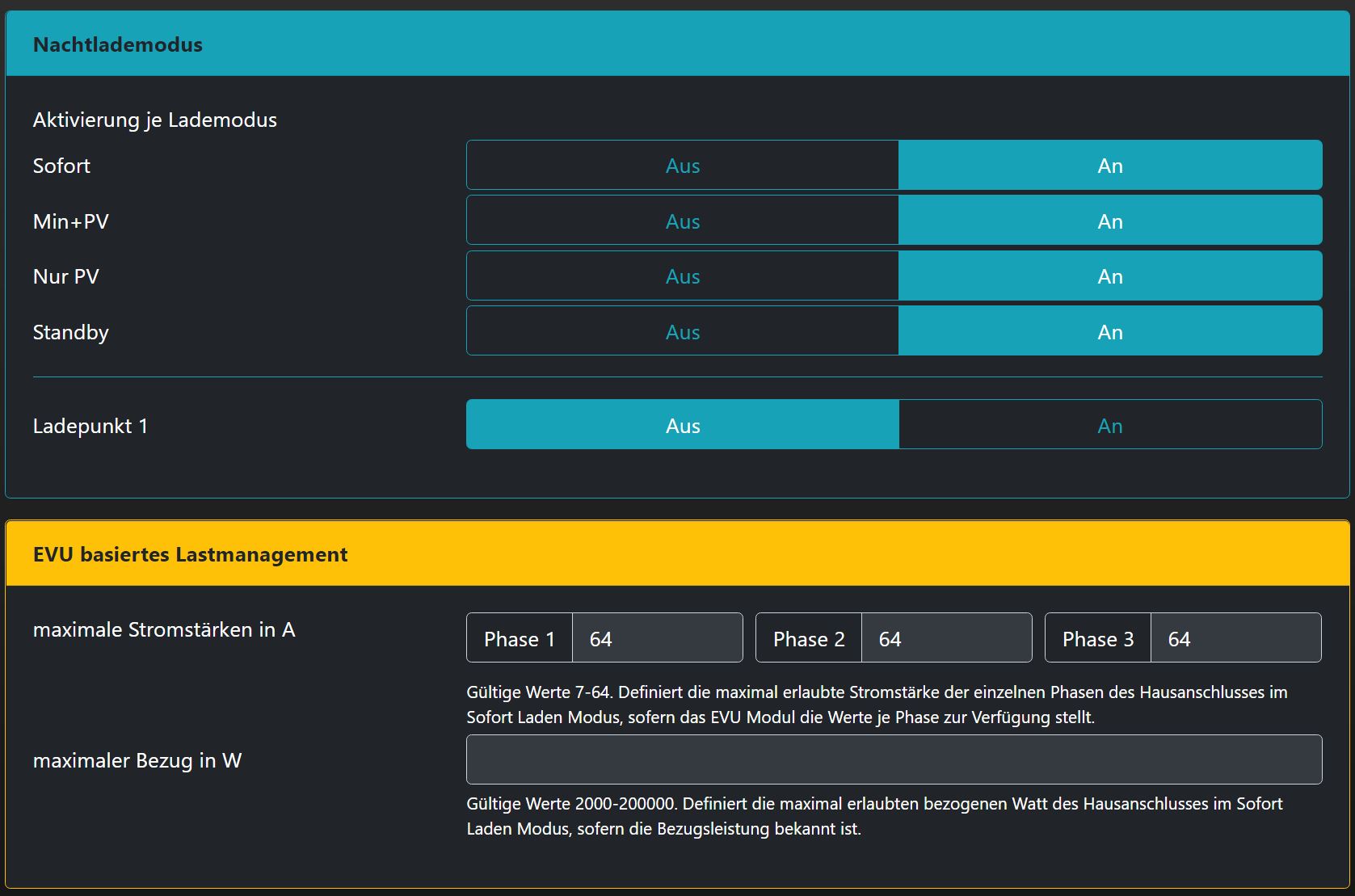 1. Wie kriege ich die WB und den VW dazu mehr als 3,6kW zu laden? Meine Einstellungen poste ich unten als Bilder
