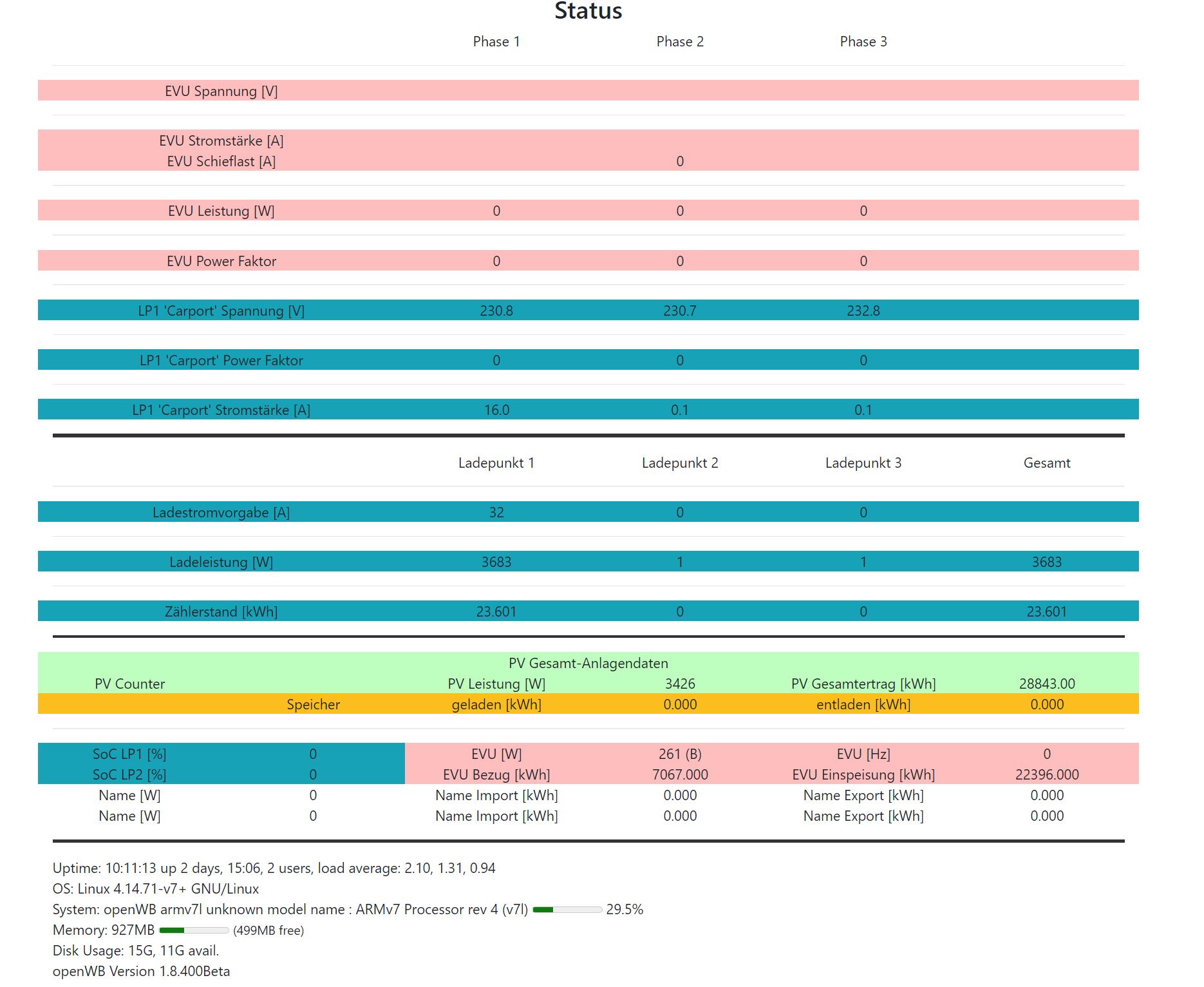 Ich habe zwar eine PV Anlage, die brauche ich in der openWB aber nicht. Die openWB ist am Wärmepumpenkreis angeschlossen, demnächst werde ich eine Zählerkaskade einbauen sodass der PV Strom in den Wärmepumpenstromkreis fließt wenn er dort benötigt wird, wenn nicht wird er eingespeist.