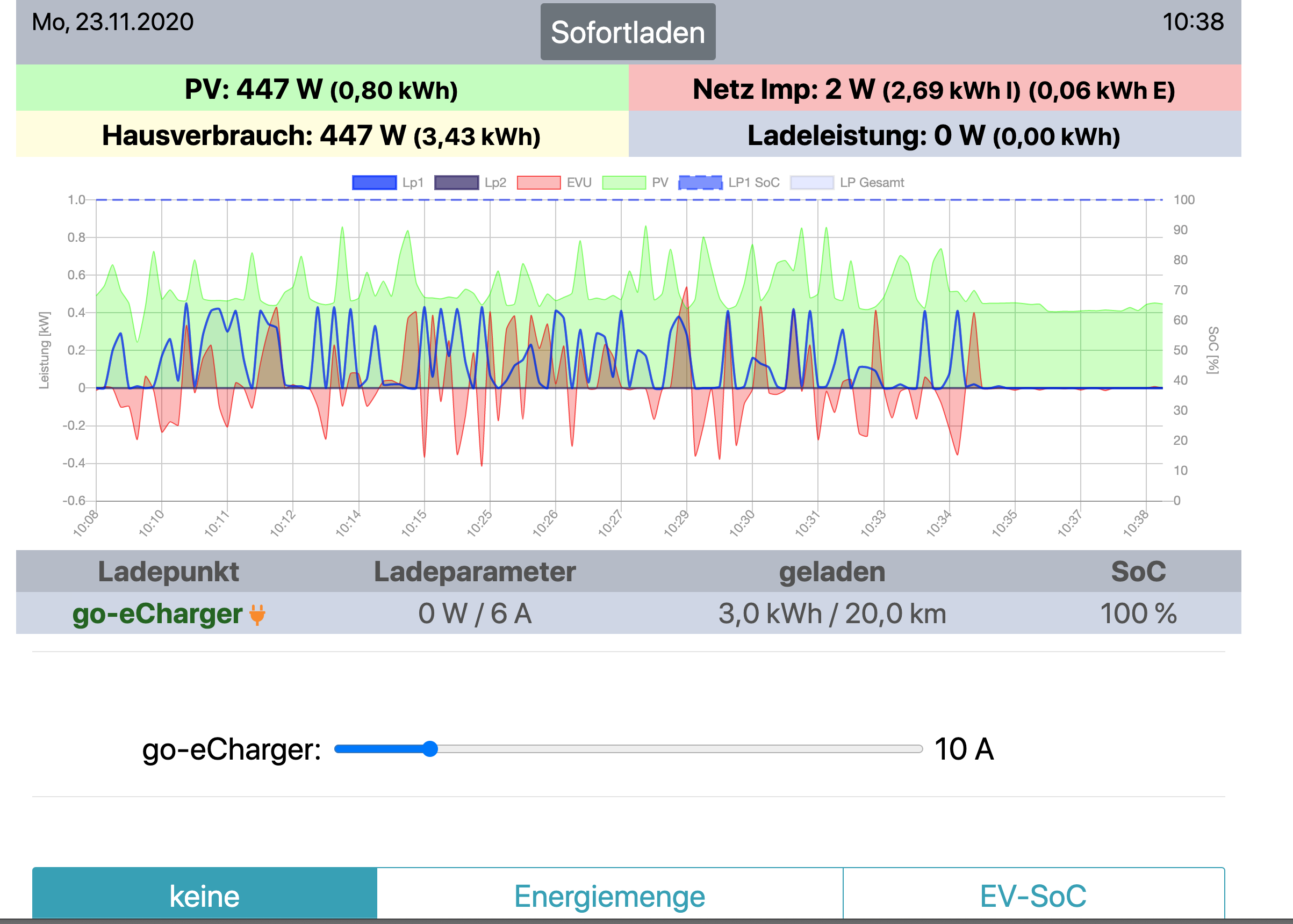 openWB standalone 1.9.303 / Cupra Born / go-eCharger Gemini V4 firmware 55.8 / PV-Anlage 9,9 kWp mit SunnyHomeManager 2.0