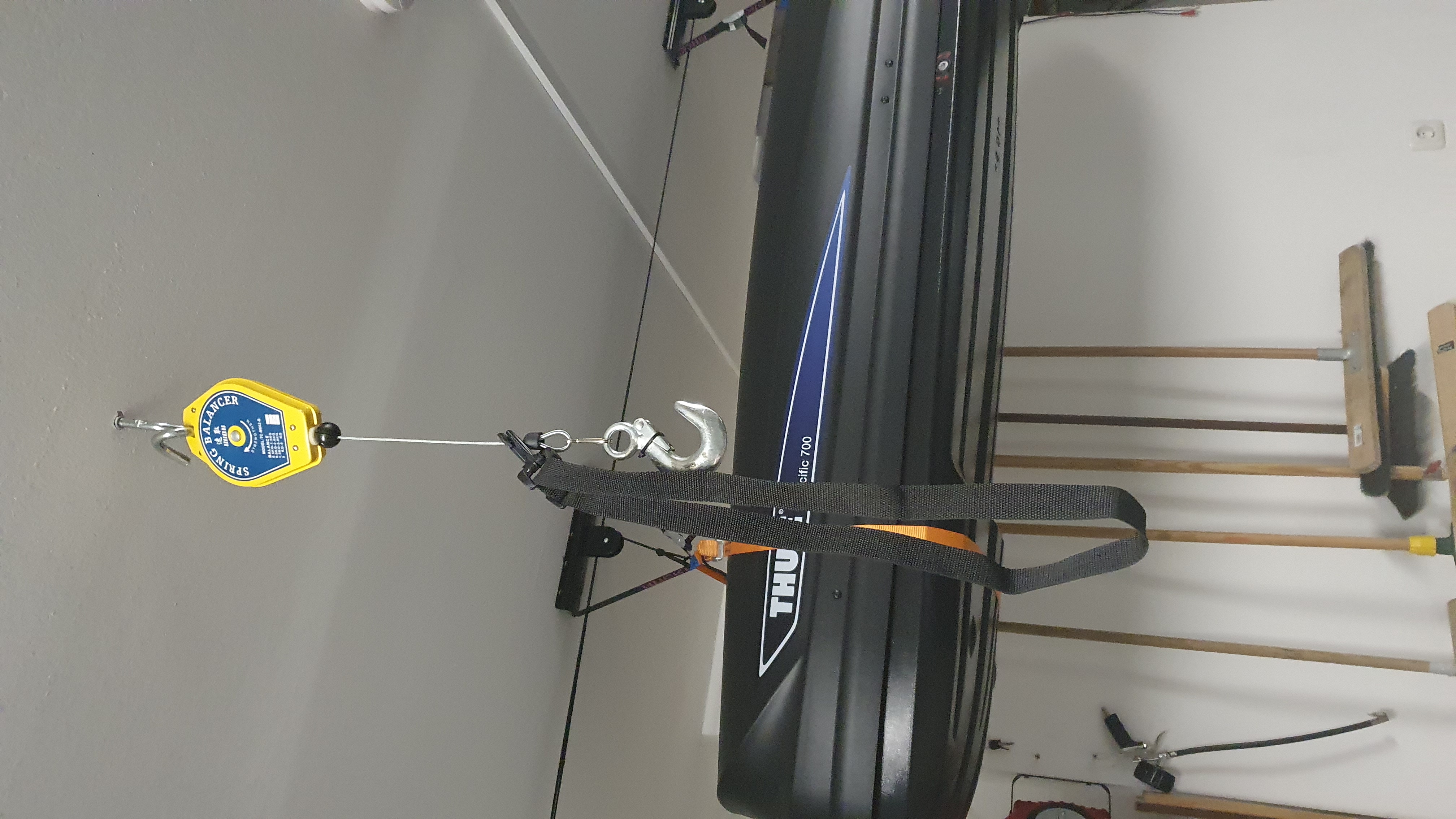 Für das EV2 habe ich das Kabel, an der Decke, über das EV1 in die Mitte der Garage gelegt (9m Zuleitung). Damit es nicht bei reinfahren rumbaumelt habe ist es an eine "ausziehbare Leine" an der Decke befestigt. Mit Karabinerhaken und Schlaufe kann ich es dort fixieren und bei bedarf runterziehen, Schlaufe aus dem Karabiner lösen und Stecker ins EV2 stecken.