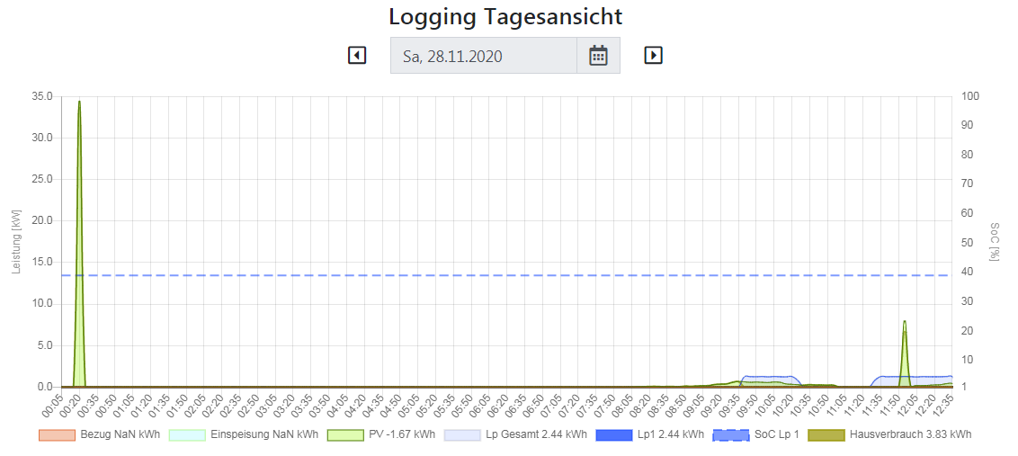* ztw. gibt es speziell nach dem deaktivieren bzw. aktivieren von WR Spitzen bis zu 20kW und das bei Nebel ... hier werden die Daten verfälscht
