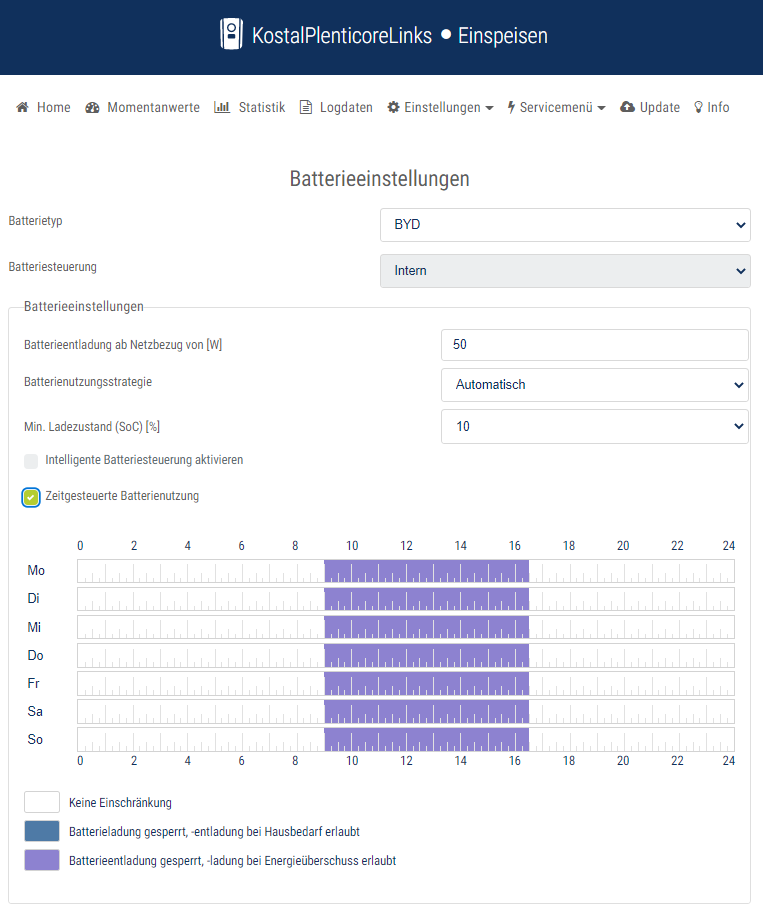 Im Winter hatte ich im Kostal WR das Entladen der Batterie tagsüber mit der die Zeitschaltung unterbunden.