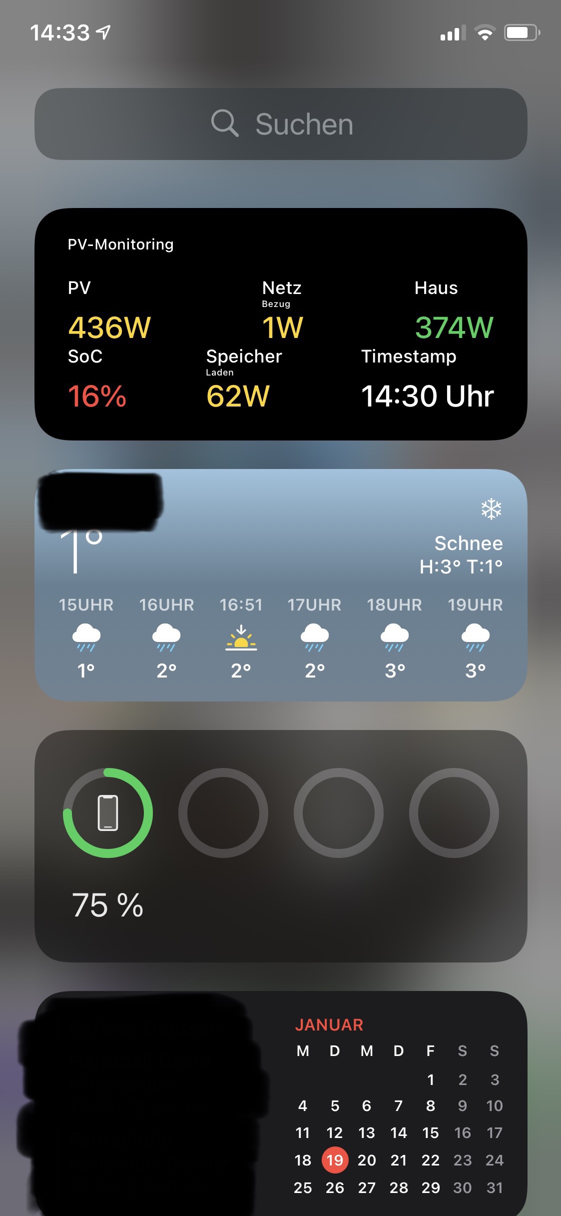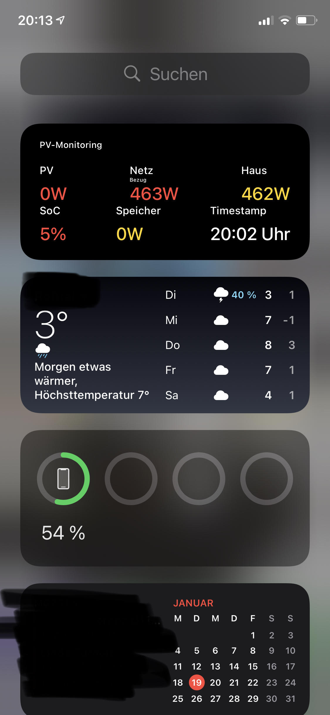 Erstmal ein paar Bilder des Widgets, dank iOS14 kann das Widget natürlich frei auf dem Homescreen platziert werden: