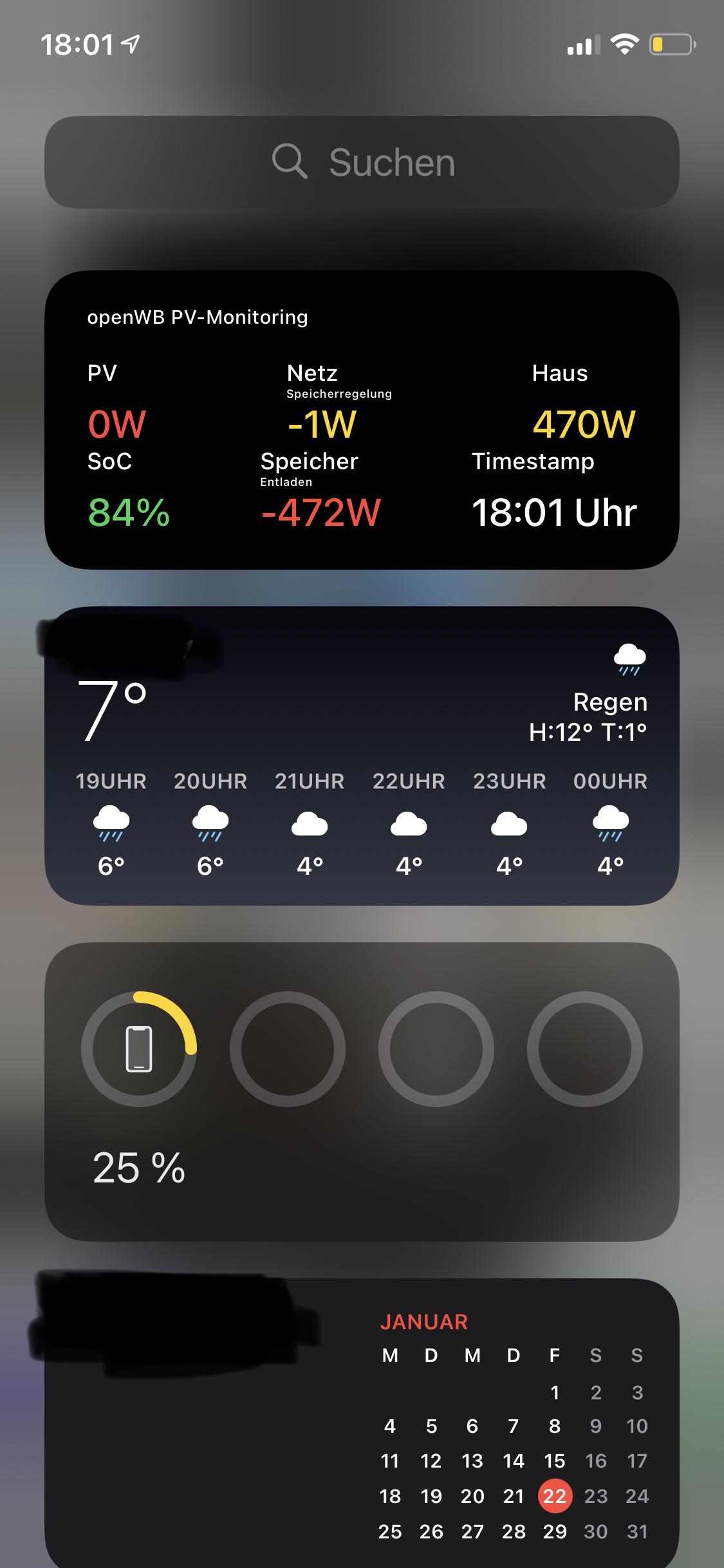 Ein anderer Ansatz, der mir aber erst gerade eingefallen ist, wäre es natürlich mit der Scriptable-App direkt auf die Ramdisk-Files zuzugreifen und auch alle Berechnungen in der Scriptable-App vorzunehmen. Damit müsste man an der OpenWB gar nichts änderte und nur die App einrichten, dass wäre dann auf jeden Fall auch interessierter-Laie tauglich. Muss ich mal mal anschauen ob das mit Scriptable so einfach geht.