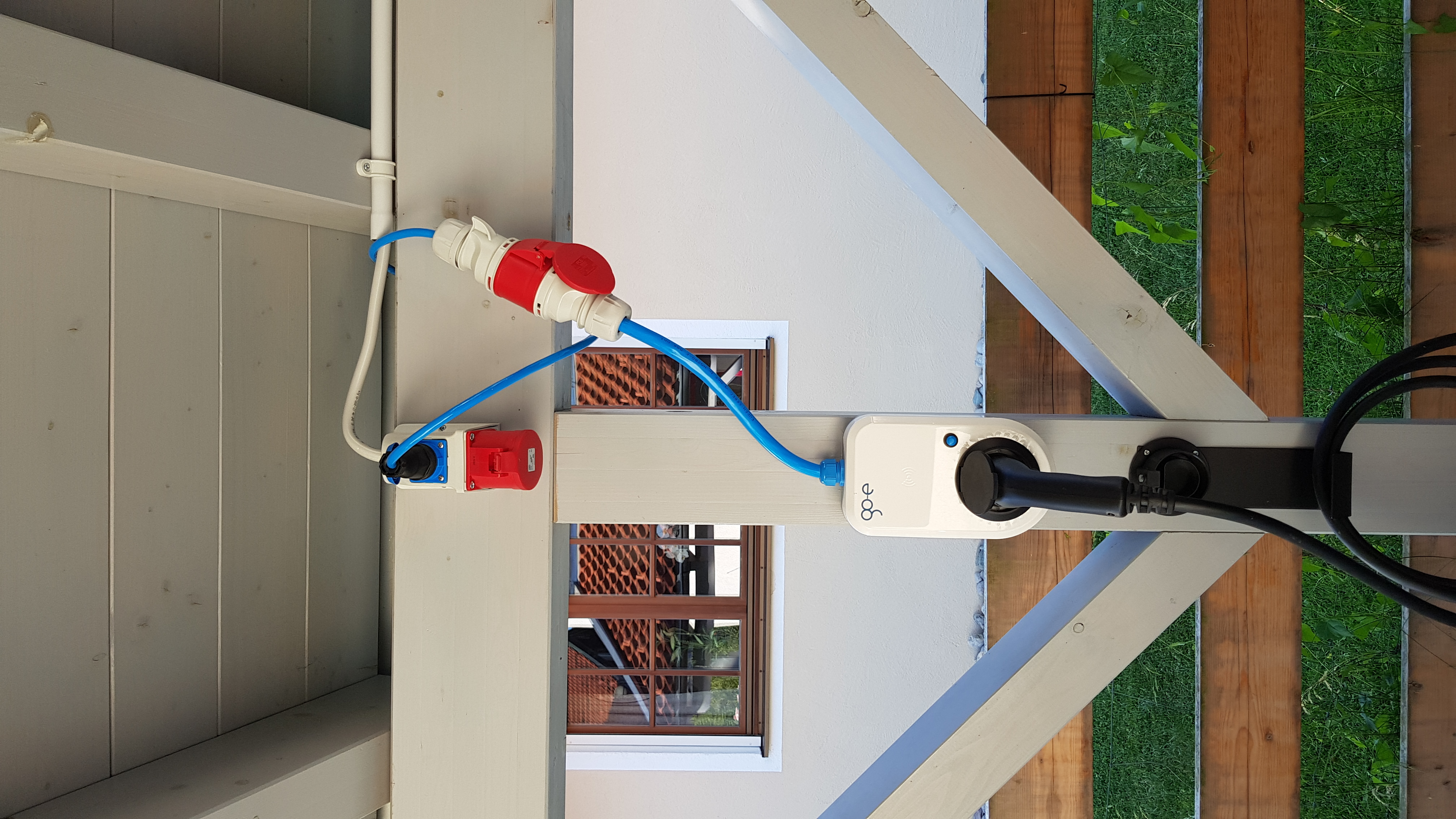 • Schukoadapter vom go-e (um Balken von Carport gewickelt)