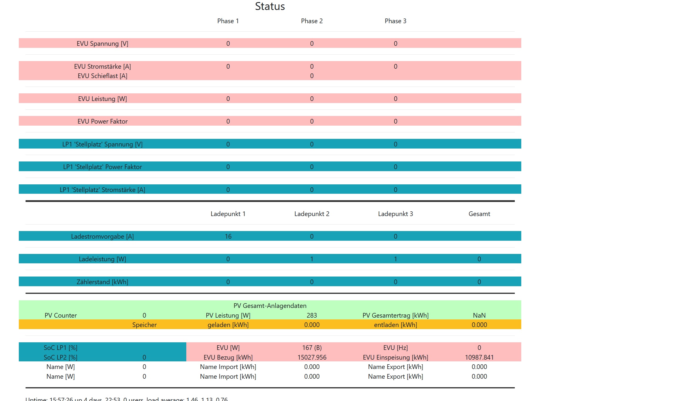 Im Status werden Erzeugung und PV noch angezeigt, der gesamte Zählerstand der Erzeugung nicht.