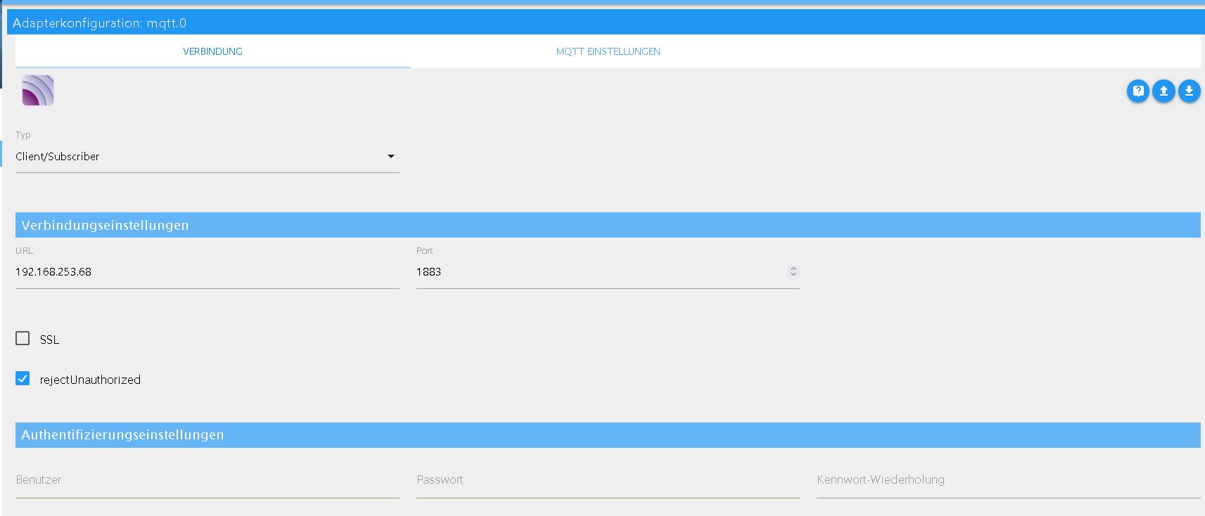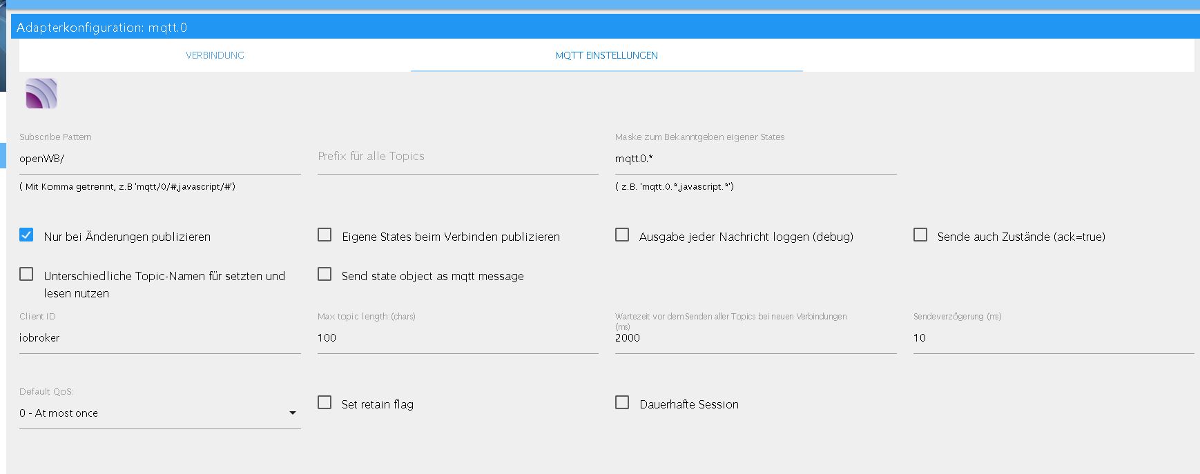 In iobroker setze ich auf den MQTT Broker/ Client mit folgender Einstellung: