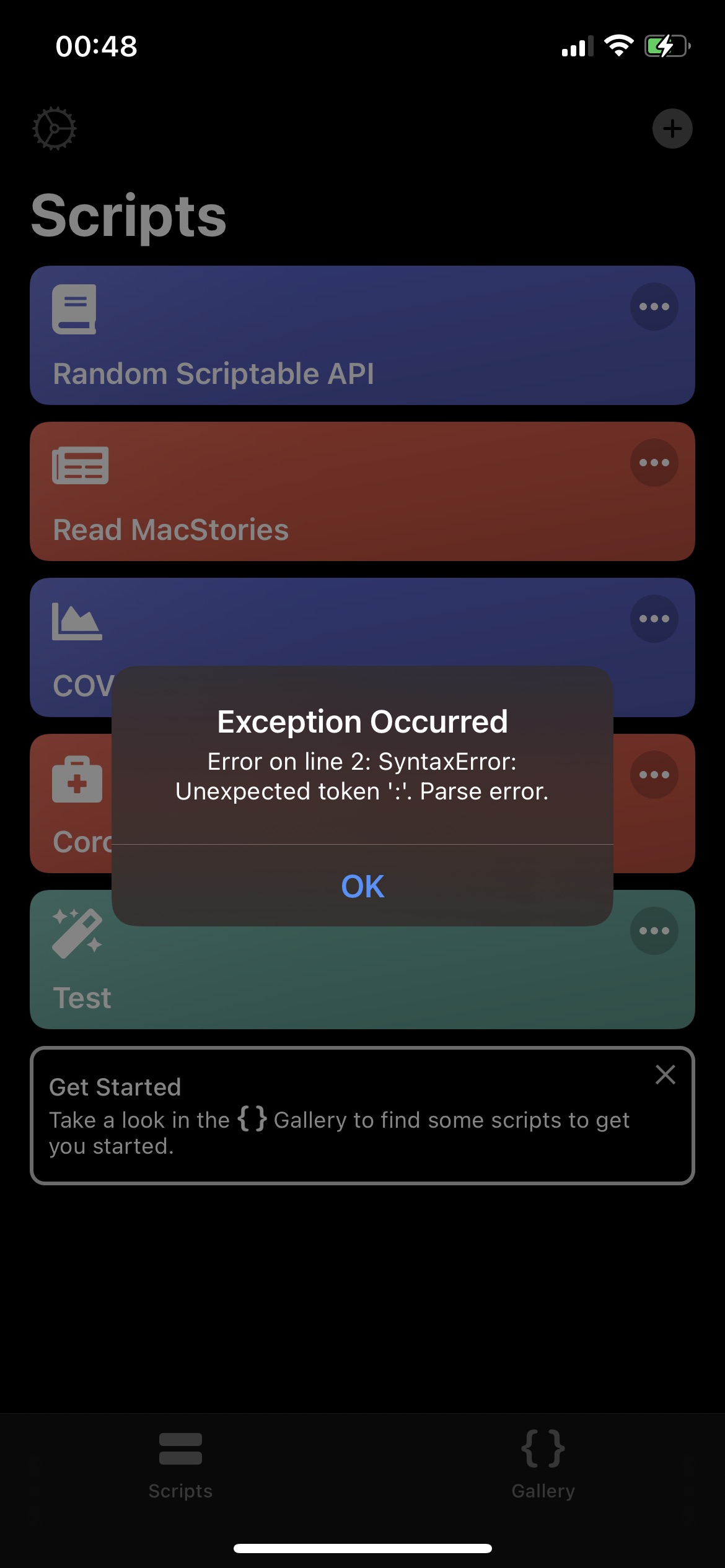 Wenn ich den Text des Skriptes manuell reinkopiere (in Scriptable) bekomme ich auch diese Meldung, siehe Bild 2.
