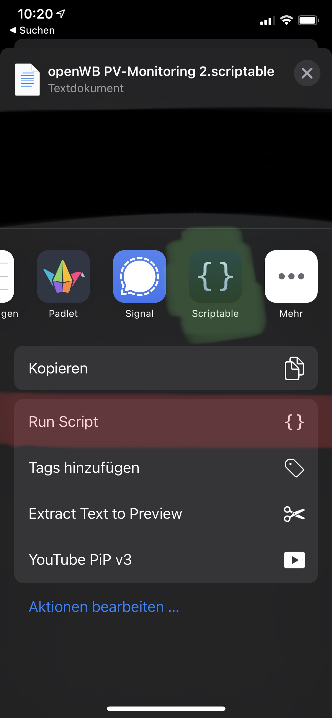 matthiasb100 hat geschrieben: Sa Feb 06, 2021 11:51 pm Ich bekomme sie aber jetzt nicht in Scriptable geöffnet. Wenn ich lange auf die Datei drücke und teilen auswähle, bietet er mir "Run Script" an. Dann ist das Skript aber leer, siehe Bild1.