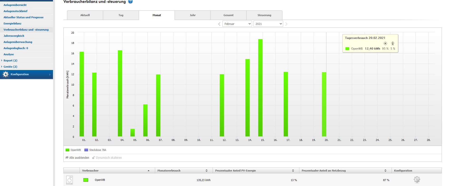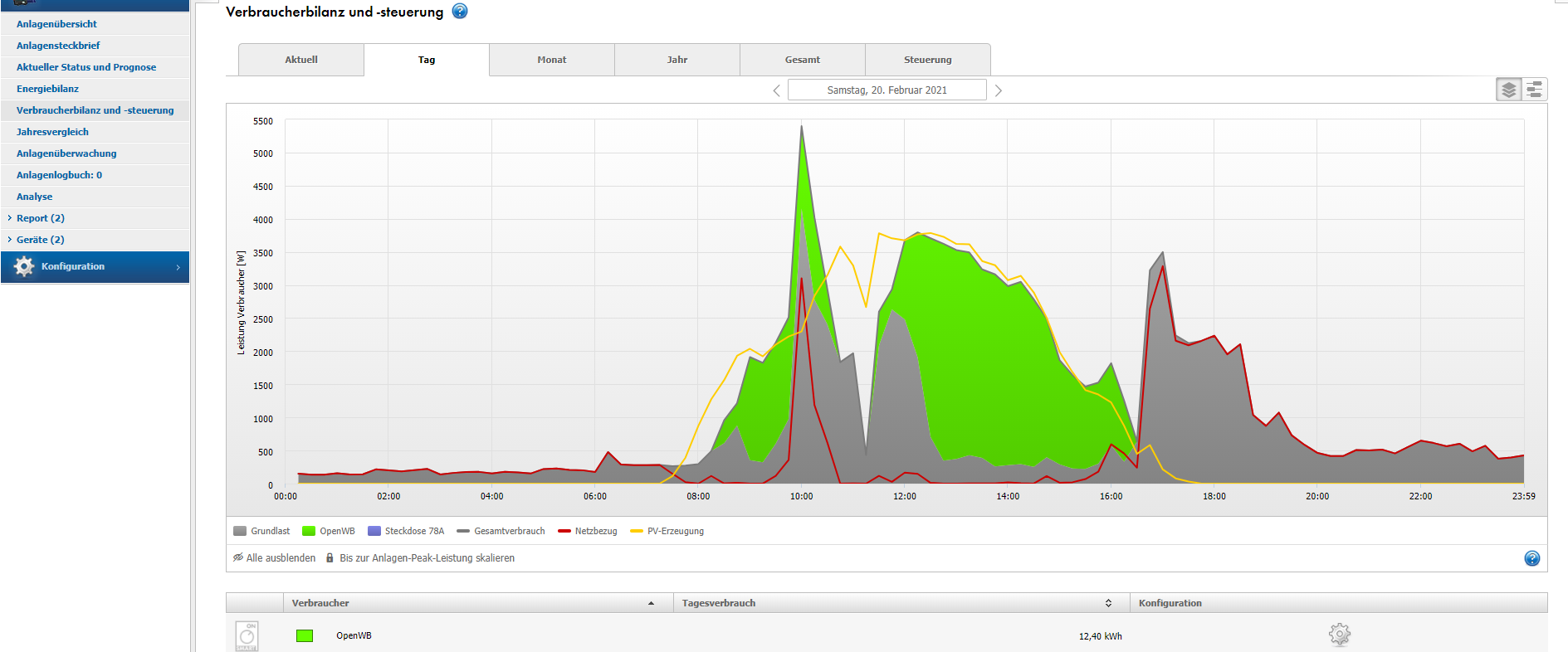 Daten werden von der OpenWB Standard+ geholt und im Sunnyportal als Verbaucher angezeigt.