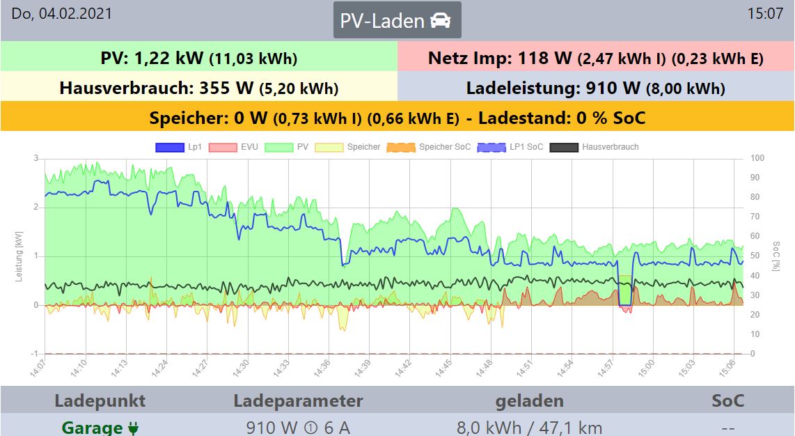 in diesem Jahr hatte ich schon ein paar schöne Tage, an dem das PV-Laden super funktioniert hat. Jetzt war ich ein wenig verwundert, dass mein Hyundai Kona mit weniger als 1,3KW lädt.