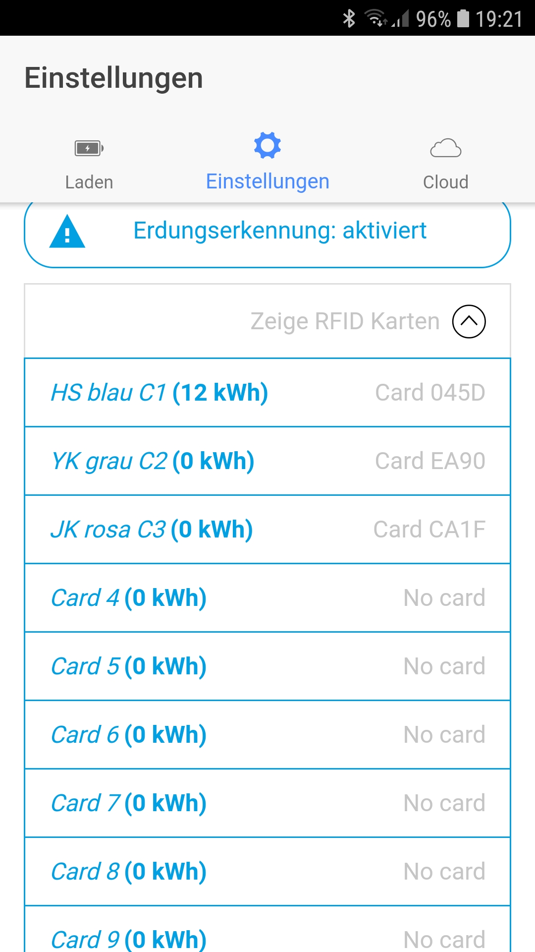 Am Wochenende habe ich endlich mal meine RFID Karten an der go-e eingelesen.