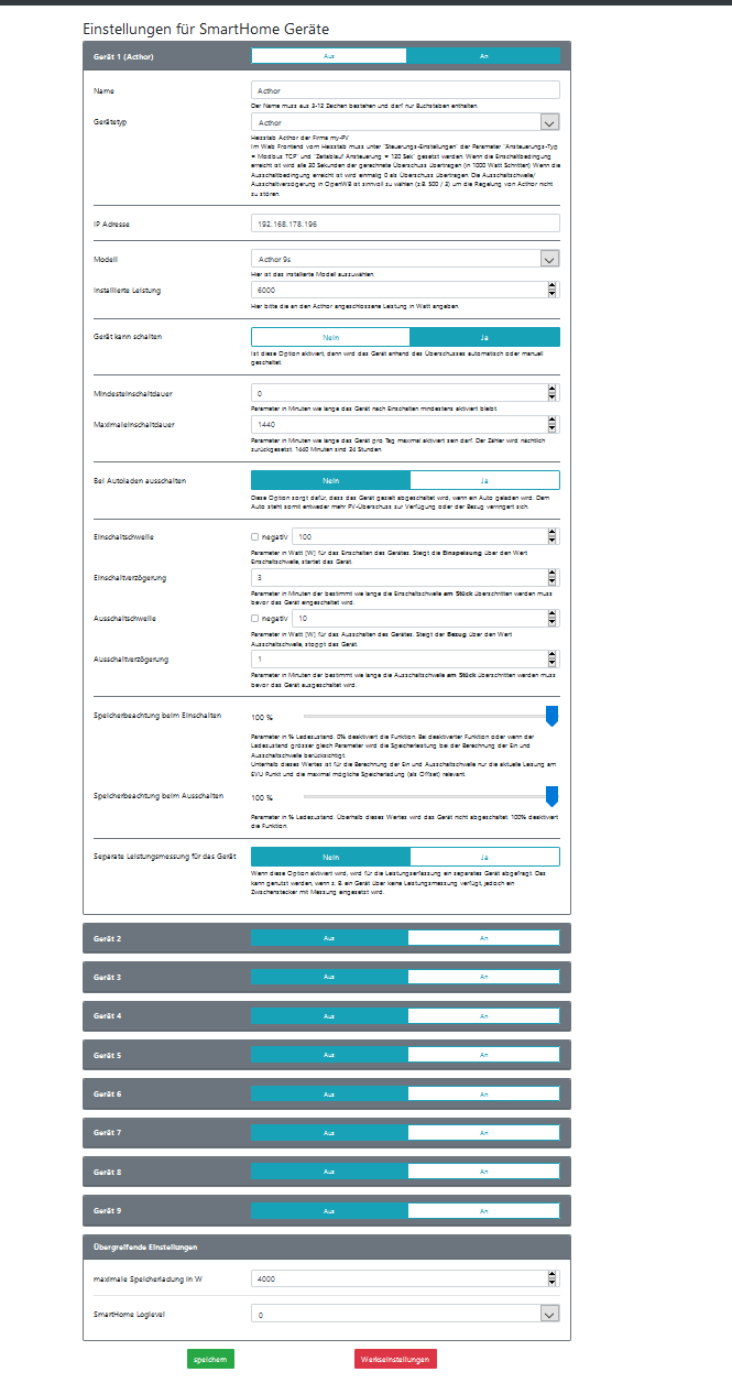 Teste erst mal Acthor9s ohne separate Leistungsmessung (Acthor9s müsste dann den gesamten Überschuss verbraten). (Installierte Leistung im Smarthome 2.0 korrekt erfassen)