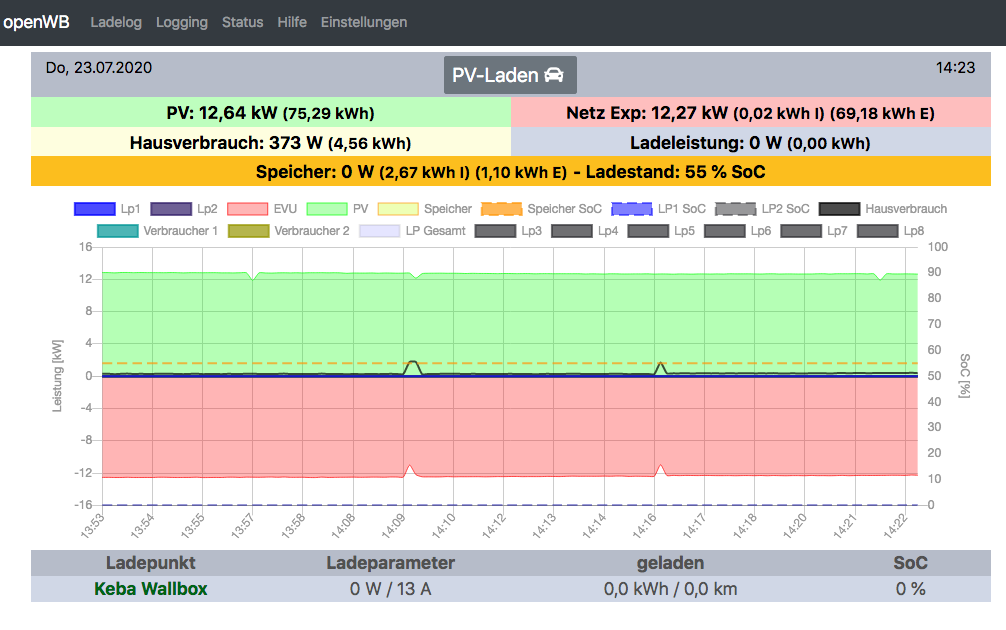 Damit wird der Graph jetzt auch auf der Startseite geladen und die OpenWB Software läuft jetzt perfekt auf meiner Debian Linux VM