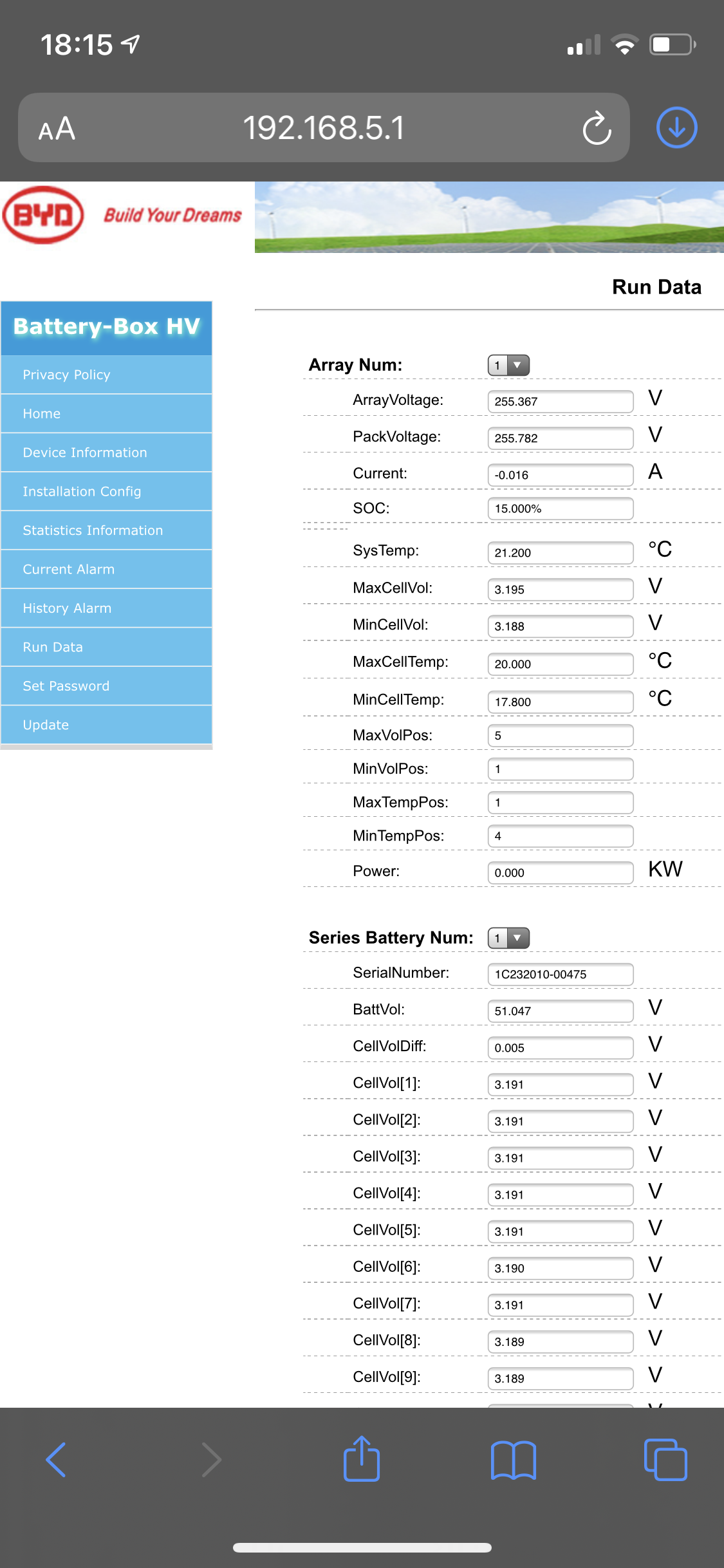 - dafür verbinde ich mich via WLAN mit der Batterie mittels integriertem WLAN, Passwort vom wlan ist 123456789