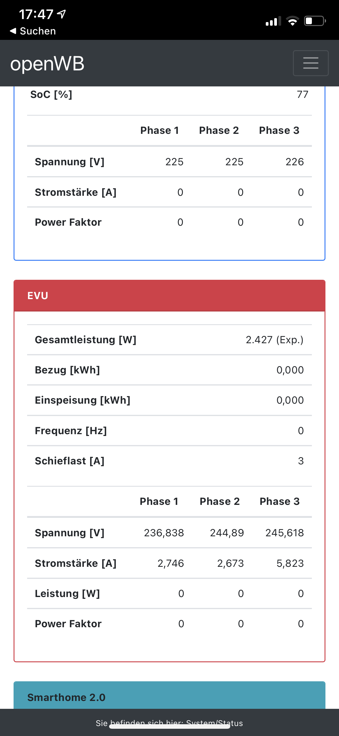 Die Exportleistung wird angezeigt! Spannung und Strom auch! Es wird jedoch keine Leistung pro Phase berechnet im Status EVU! Kann es daran liegen.