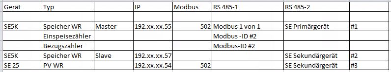 heute kommt nochmals der Installateur vorbei. Mal eine generelle Frage. Würde es Sinn machen, die beiden WR-Speicher unter einer gemeinsamen IP (incl. Meter) zu betreiben und den WR-PV unter einer anderen IP. Ich vermute mal die RS 485 benötigt SolarEdge, damit die WR miteinander kommunzieren.