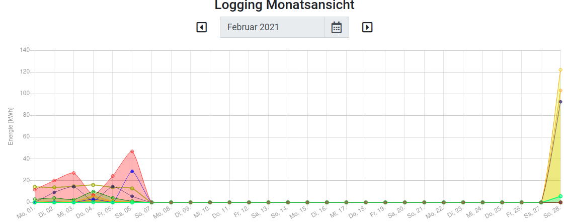 In der Monatsansicht für Februar zeigt für fast alle Tage keine Daten: