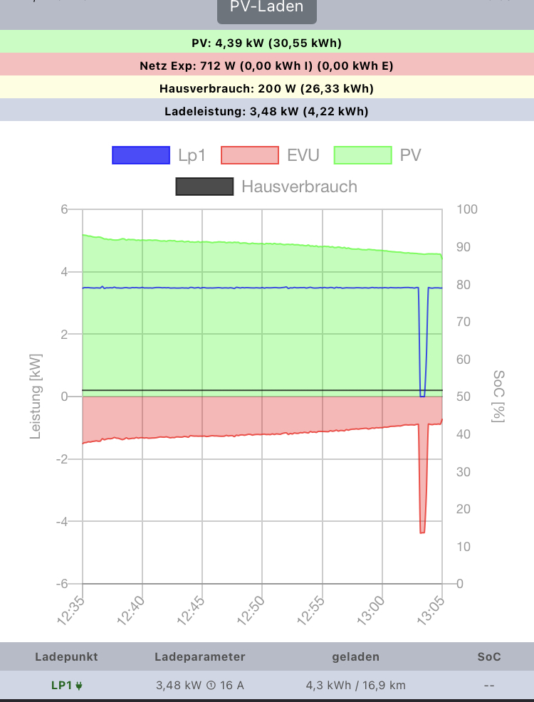 Bei mir funktioniert die Darstellung Laden nicht, der LP1 bzw die Umschaltung von Speicher auf llaktuell, wenn das Fahrzeug lädt, findet nicht statt.
