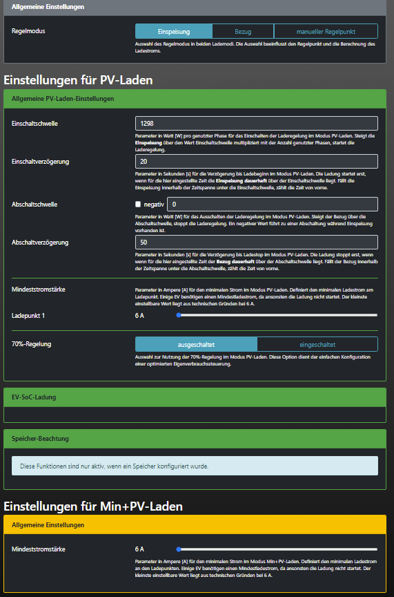 Zwischendurch hatte ich bei PV-Laden und PV+Min auf Automatikmodus umgeschaltet, aber dann wieder auf einphasig. Aber das Problem hat sich damit nicht gelöst.