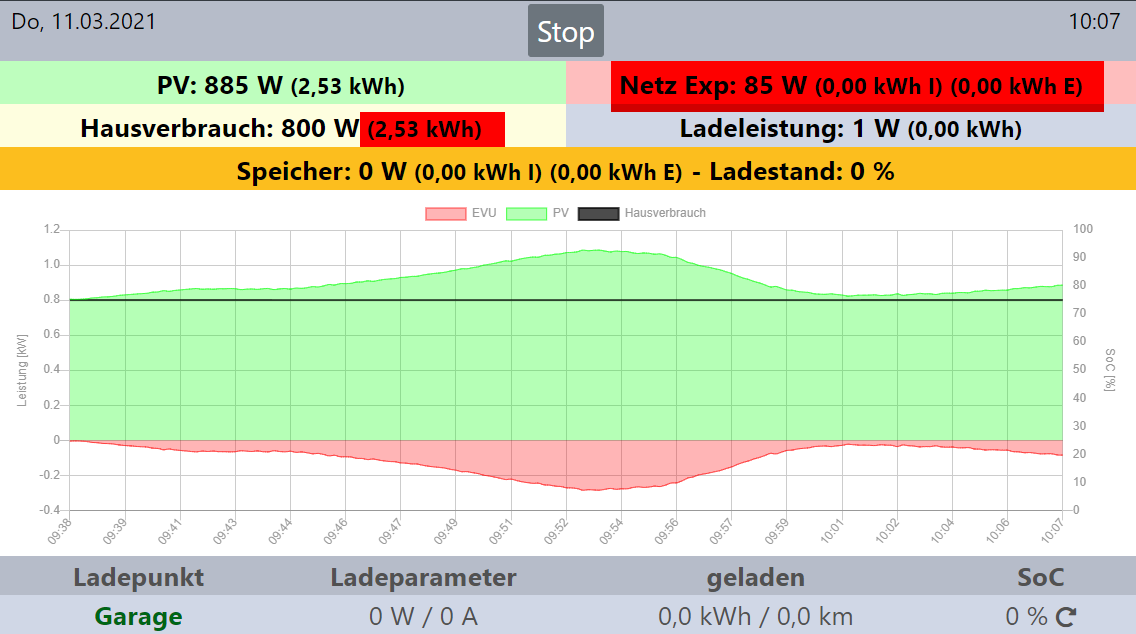 Evu/Netz: Hier springt die Anzeige korrekt zw. "Netz Imp" und und "Netz Exp" je nachdem wie viel von der PV gemeldet wird (in Abhängigkeit der Hausverbrauchs). Allerdings werden die Werte für "kwH I" und "kwH E" nicht aktualisiert. Bleiben immer auf 0.