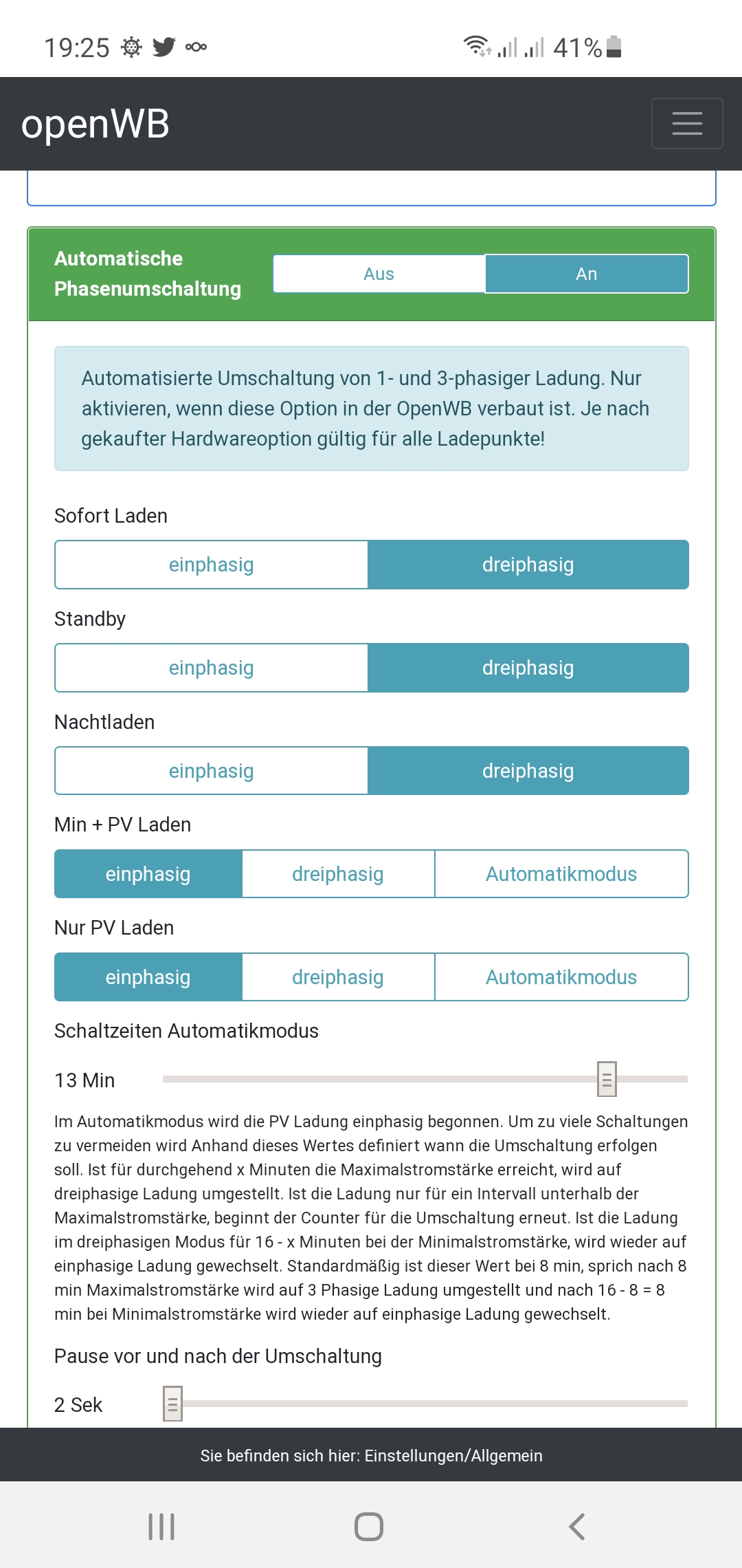 Screenshot aus meinem Raspi System. MIN+PV hat Phasenumschaltung