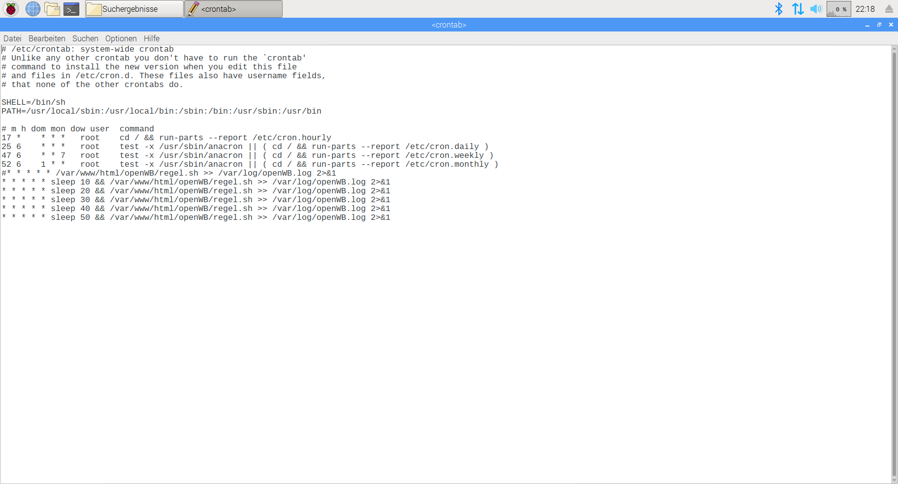 crontab -e eingeben. Vermutlich musst du noch deinen lieblings Editor auswählen. Du landest dann direkt im Editor für die passende crontab. Änderungen einbauen und dann speichern.