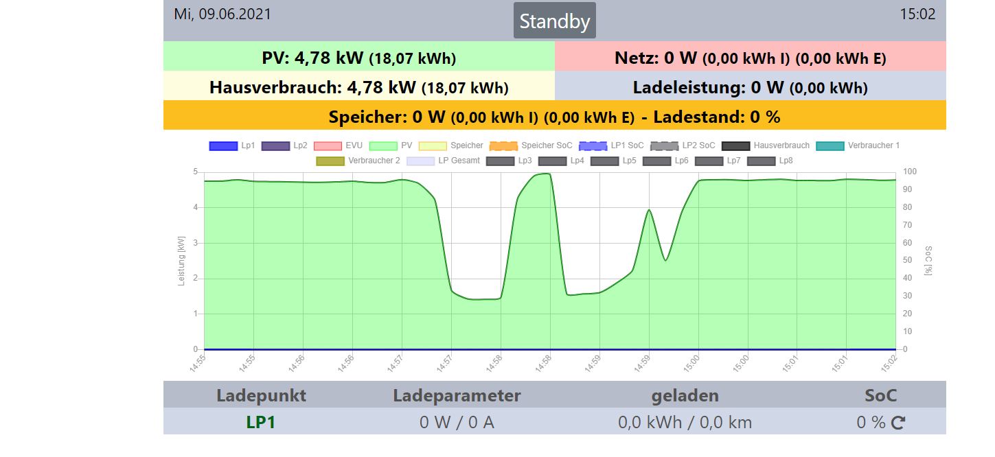 entsprechenden Ports wurden vorgenommen. Die Leistungswerte der Wechselrichter sind in der OpenWB auch zu sehen.