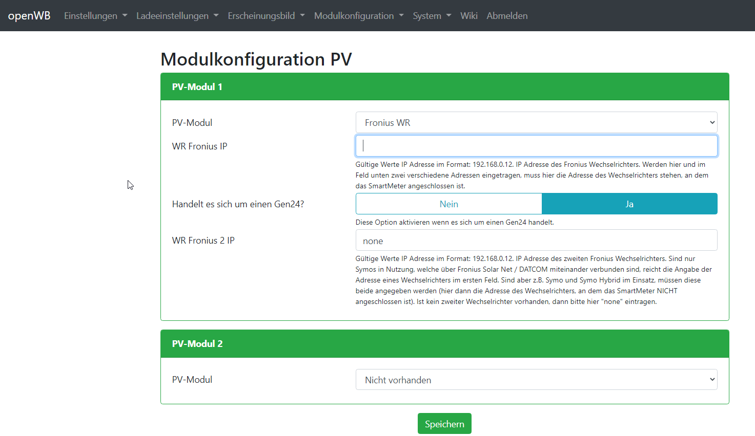 Wie sind denn die Einstellungen im PV- und EVU-Modul?