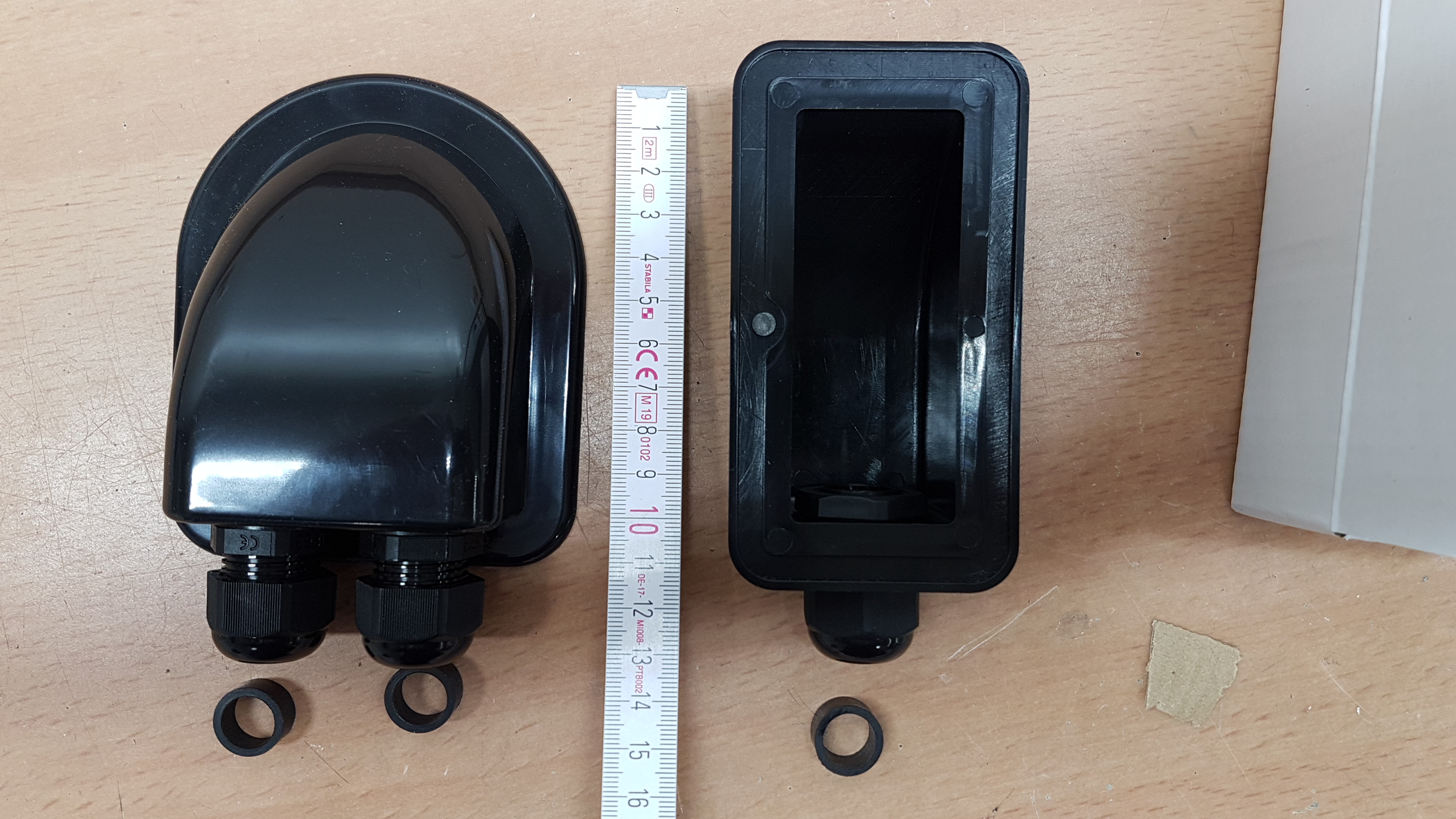 2. Alternative, ich hänge die Box/Boxen weiterhin in die Garage neben den Hausinstallationskasten (warm, kein Regen, keine Sonne) und setze die Buchse ab (Entfernung ca. 1m und durch die Wand) und montiere die Buchse auf die Außenseite der Garage. Weniger auffällig, keine Kabelklemmerei mit dem Garagentor.