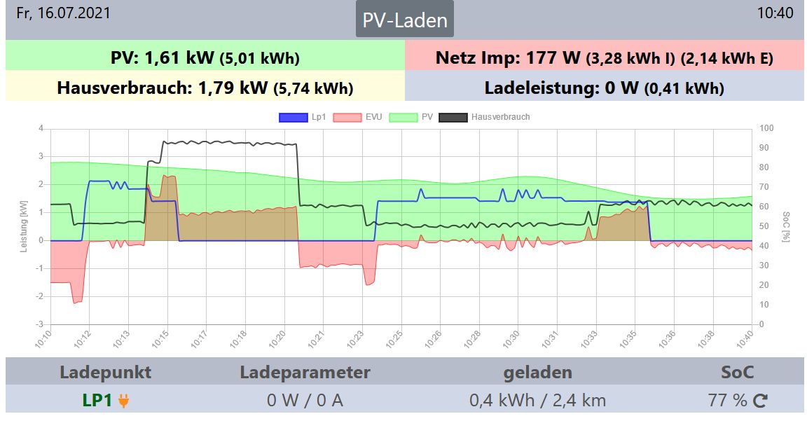 10:12 den Smart angeschlossen, 10:13 kam ihm die Waschmaschine in die Quere. Alles perfekt geregelt. Nur, wie immer, zu wenig Sonne ;)