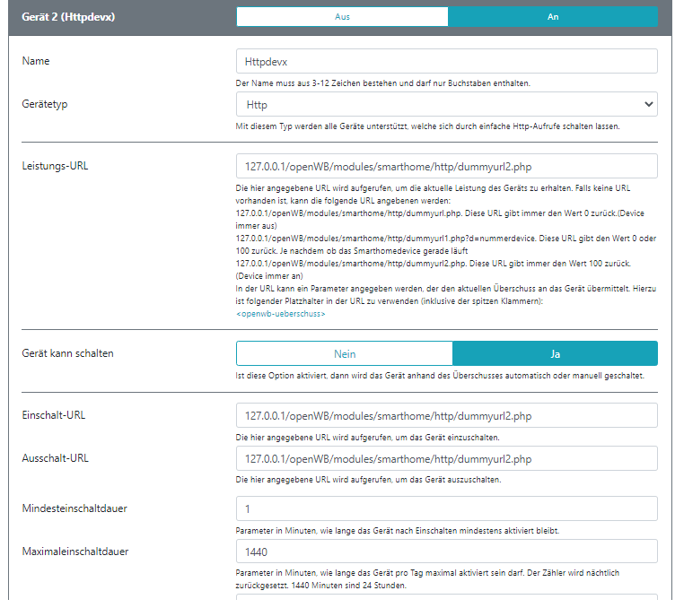 Habe die Einstellungen für Gerätetyp "HTTP" wieder zurückgenommen und auf Gerätetyp "kein Gerät" geändert: